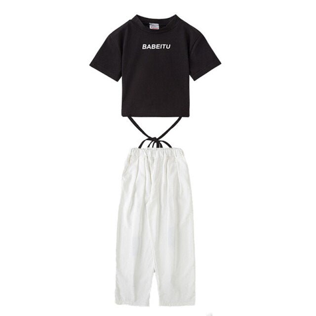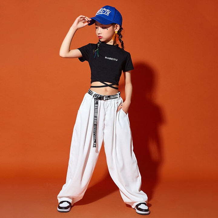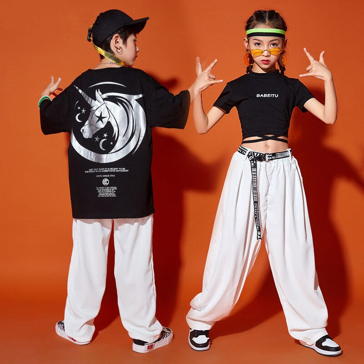 Hip Hop Dance Outfit Kids Rave Clothing Cheerleader Uniform Street Dancewear Casual Pants Stage Costume Festival Clothing DL7854