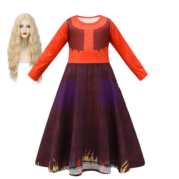 Hocusus Cosplay Pocusus 2 Halloween Children Girls Witch Sandersonon a Sisters Mary Sarahah Winifreded Dress Child Masquerade Party Costume