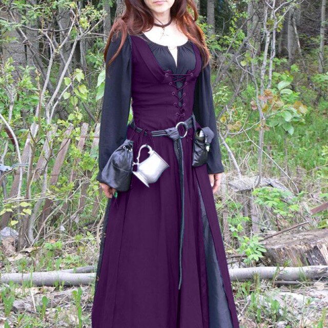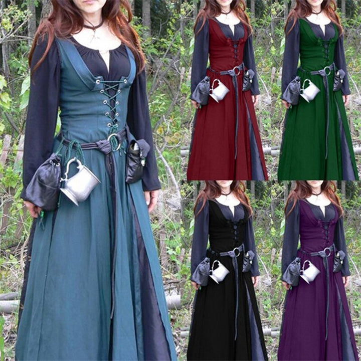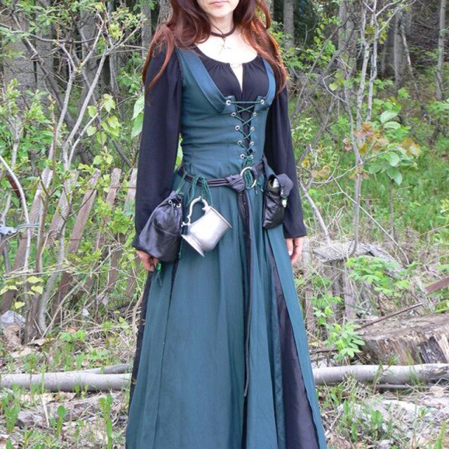 Medieval Costume Dress Renaissance Vintage Gothic Long Sleeve Lace Up Female Dress Halloween Party Carnival Costume for Woman
