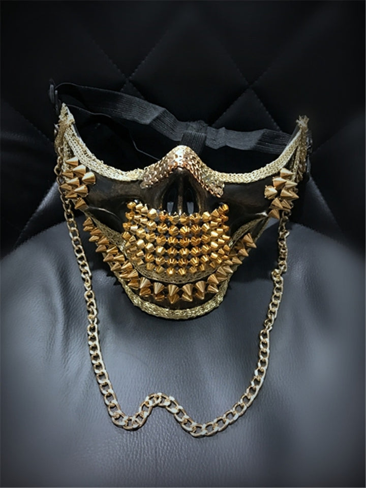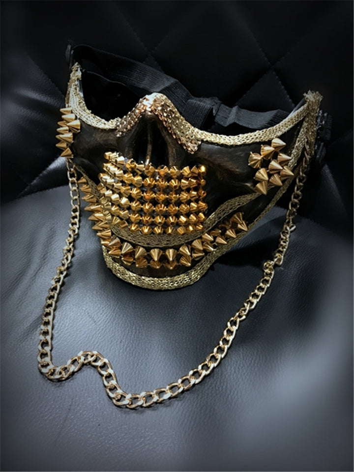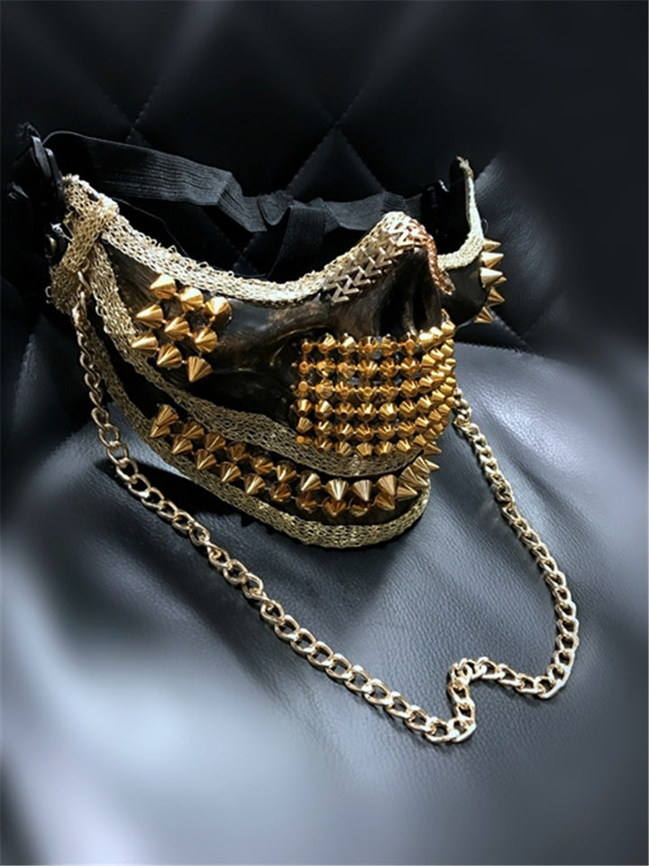 Men's Super Exaggerated Skull Punk Rivet Mask Cool Night Club Dance Performance Mask Halloween Mask Gold/Silver Color Handmade