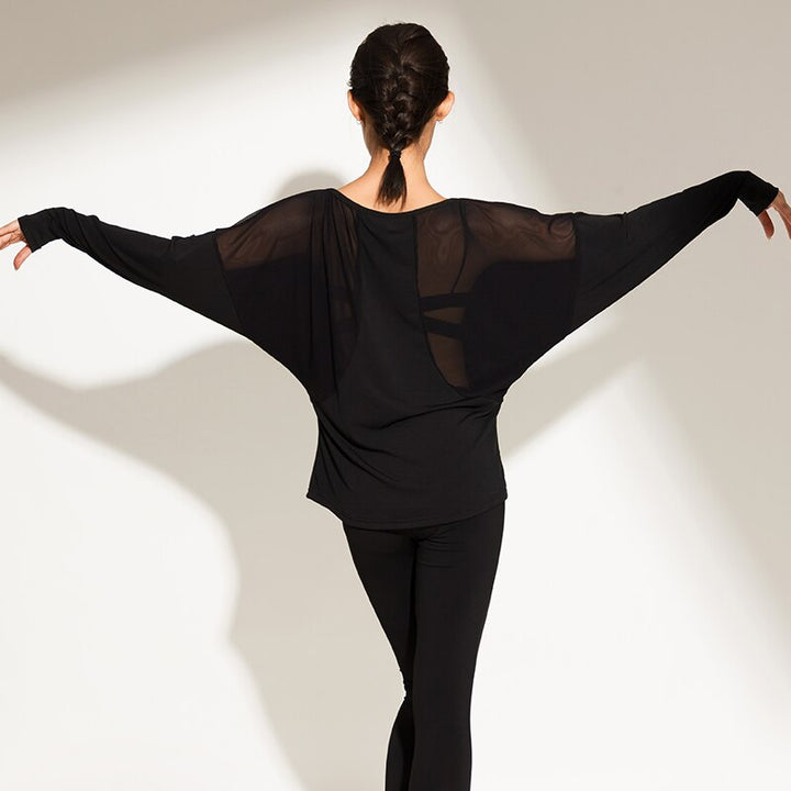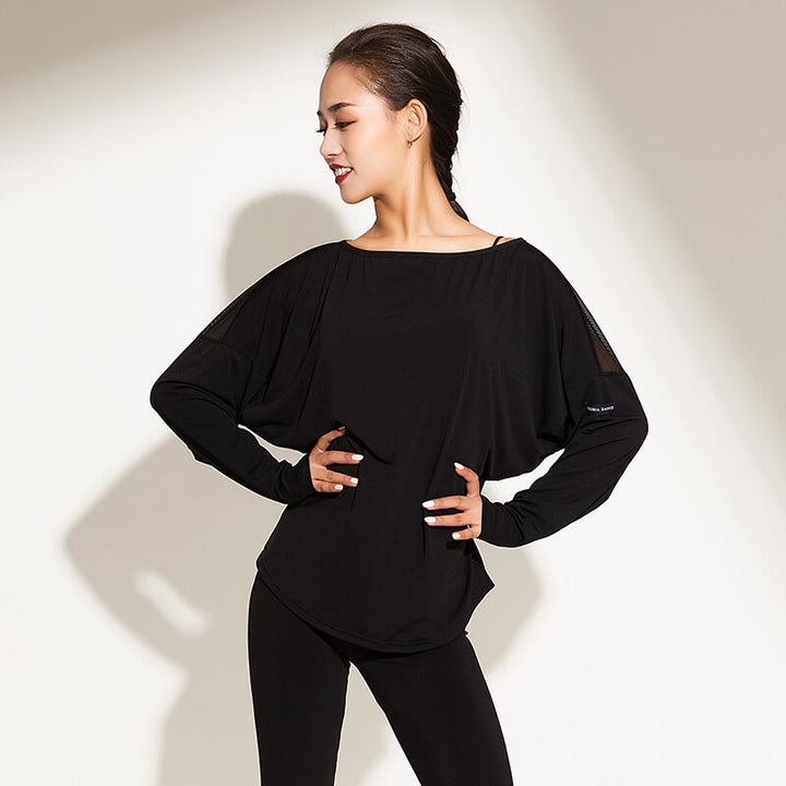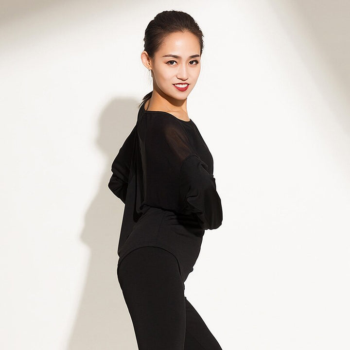 New Latin Dance Practice Clothes Women'S Black Loose Long-Sleeved Tops Sexy Mesh Shirt Ladies Ballroom Practice Clothing DL5210