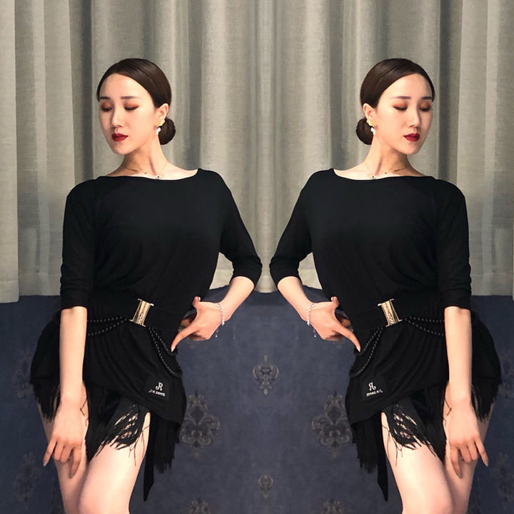 New Sexy Latin Dance Top Women Loose Back Cross Modern Dance Top Ballroom Rumba Samba Dance Dress Practice Clothes SL5753