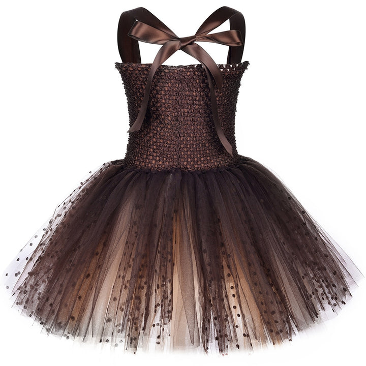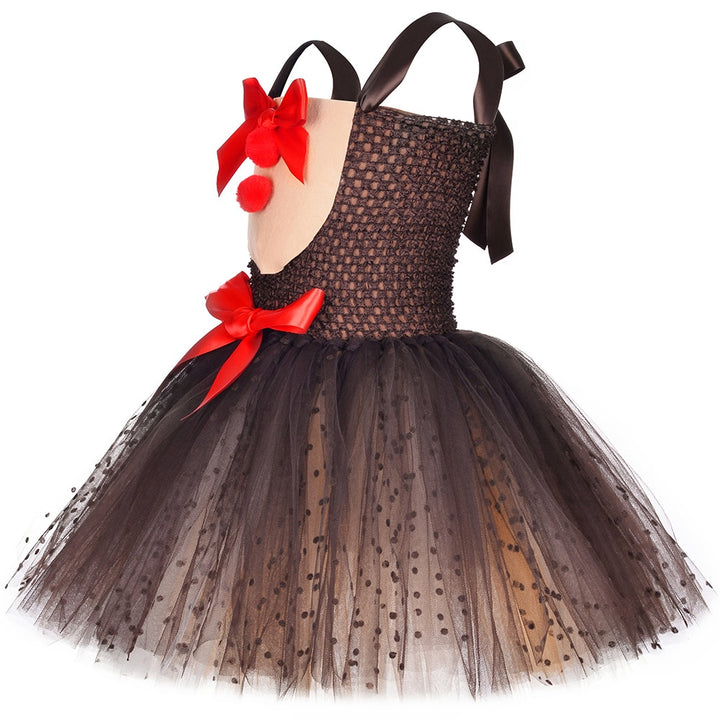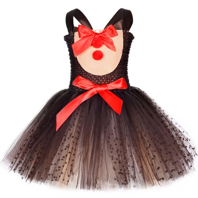 Reindeer Girls Costumes Toddler Girl Brown Polka Dot Tulle Dress Kids Christmas Elk Cosplay Clothes New Year Purim Party Gifts