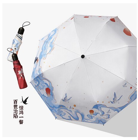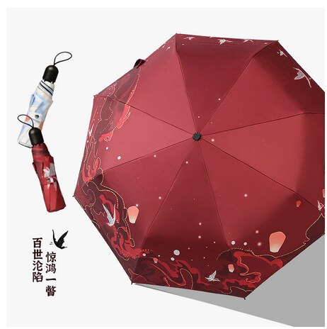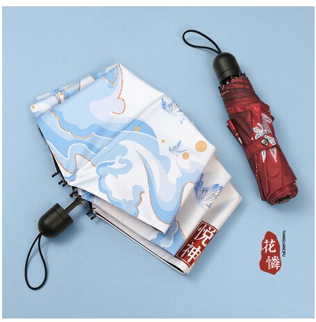 Tian Guan Ci Fu Hua Cheng Xie Lian Student Fashion Fold Umbrella Anime Parasol Rain Sunny Black Adhesive Umbrella Cosplay Gift