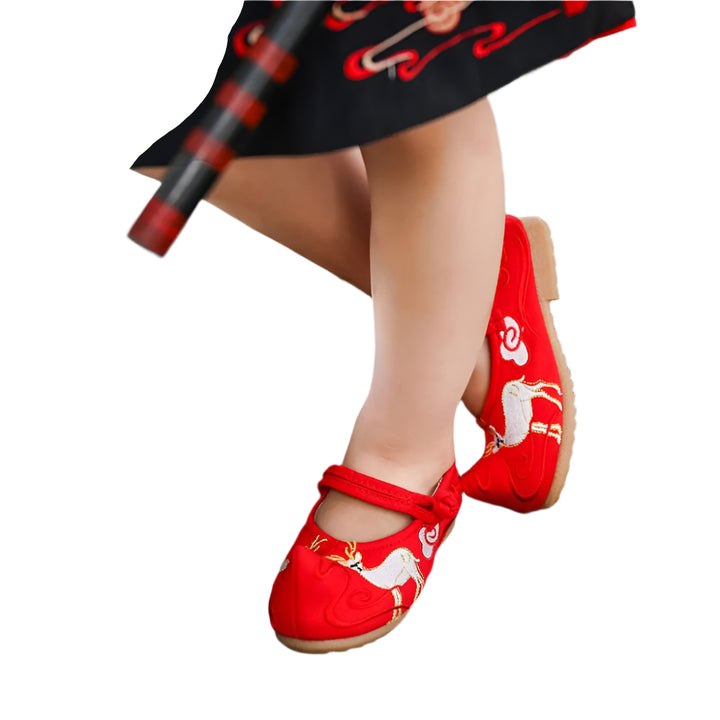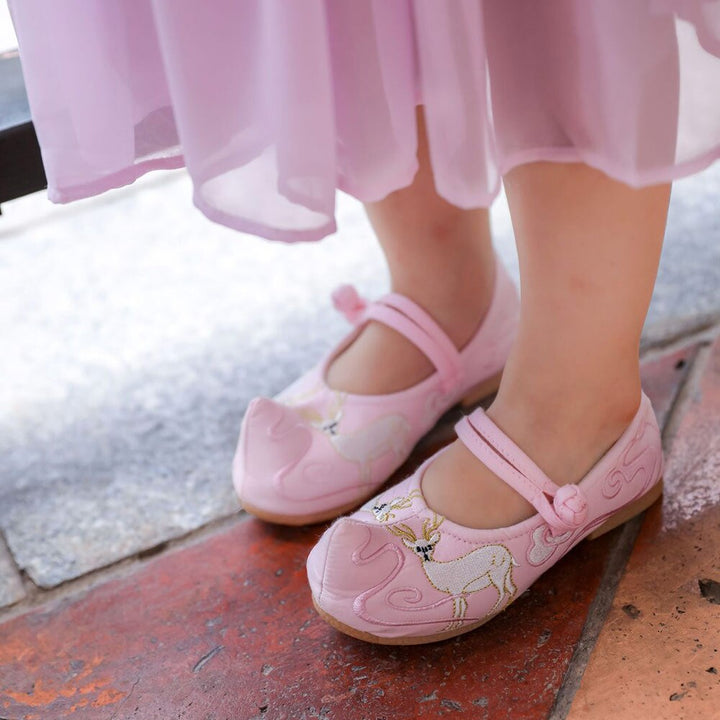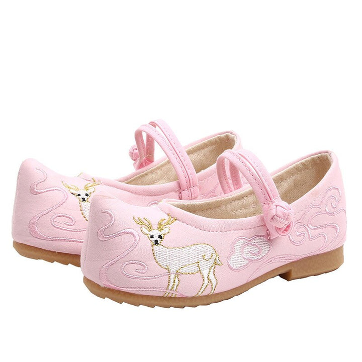 Chic Pointed Toe Kids Cotton Ballet Flats Deer Embroidered Cute Flat Shoes for 1-14 Years Children Comfort Cosplay Shoes
