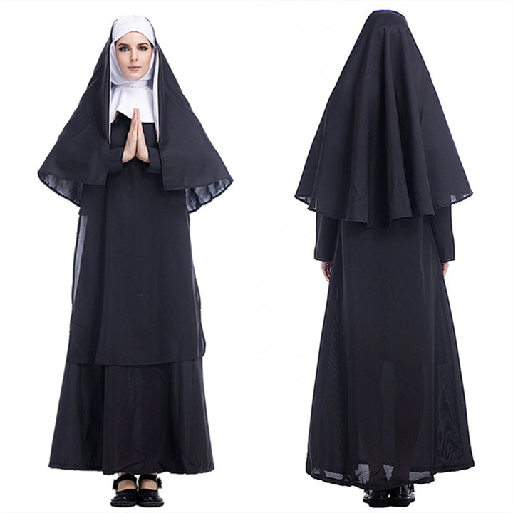 Women Nunn Costumes Priestt Monasteryy Mariaa Medieval Cosplay Halloween Carnival Party Performance Disguise Black Clothing Set