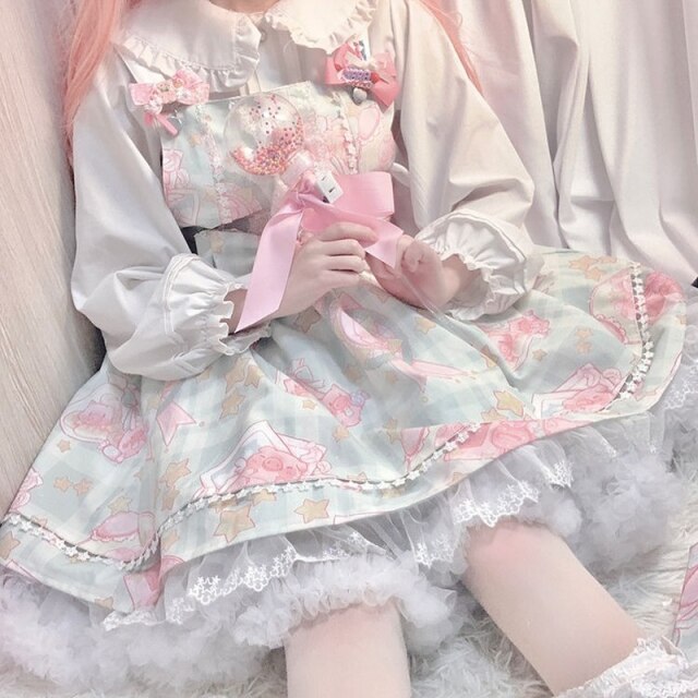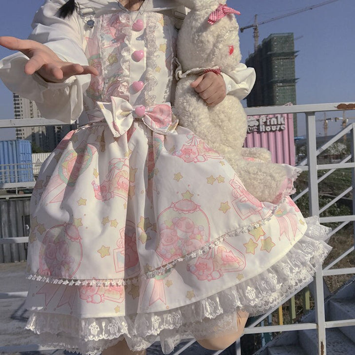 Women's Retro Special Style Cartoon Sleeveless Bow Lace Princess Dress Japanese Sweet Kawaii Jsk Lolita