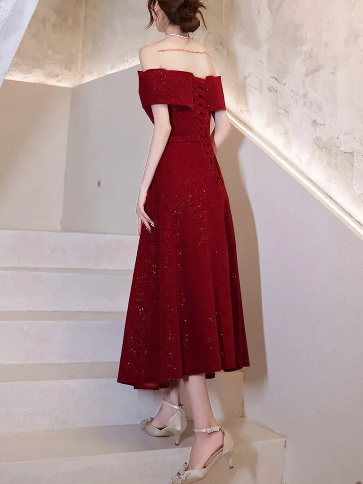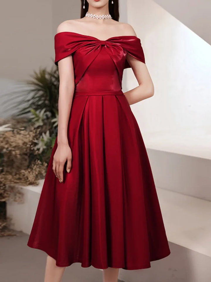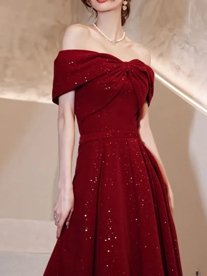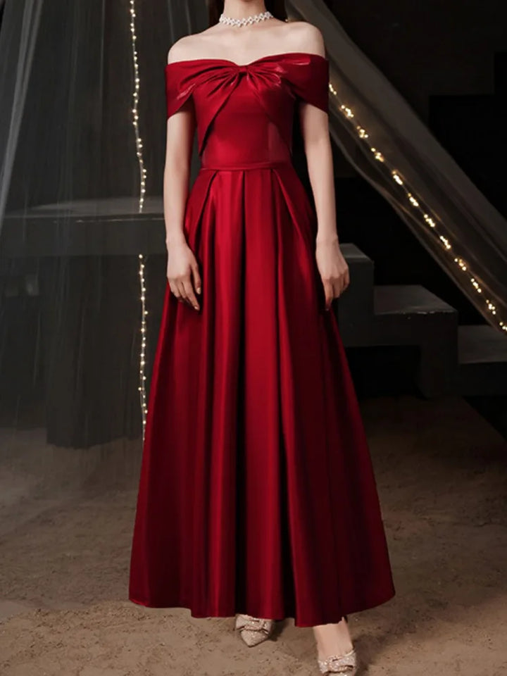One Shoulder Elegant Design Bow Wedding Party Dresses Gown Solid Drapeds Slim Waist Evening Dress Back Cross Lace Up Prom Robe