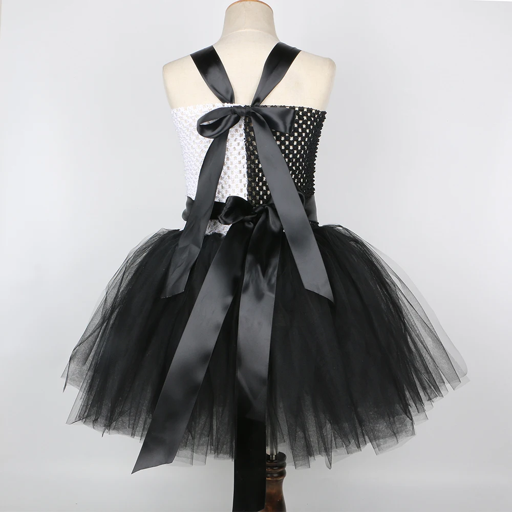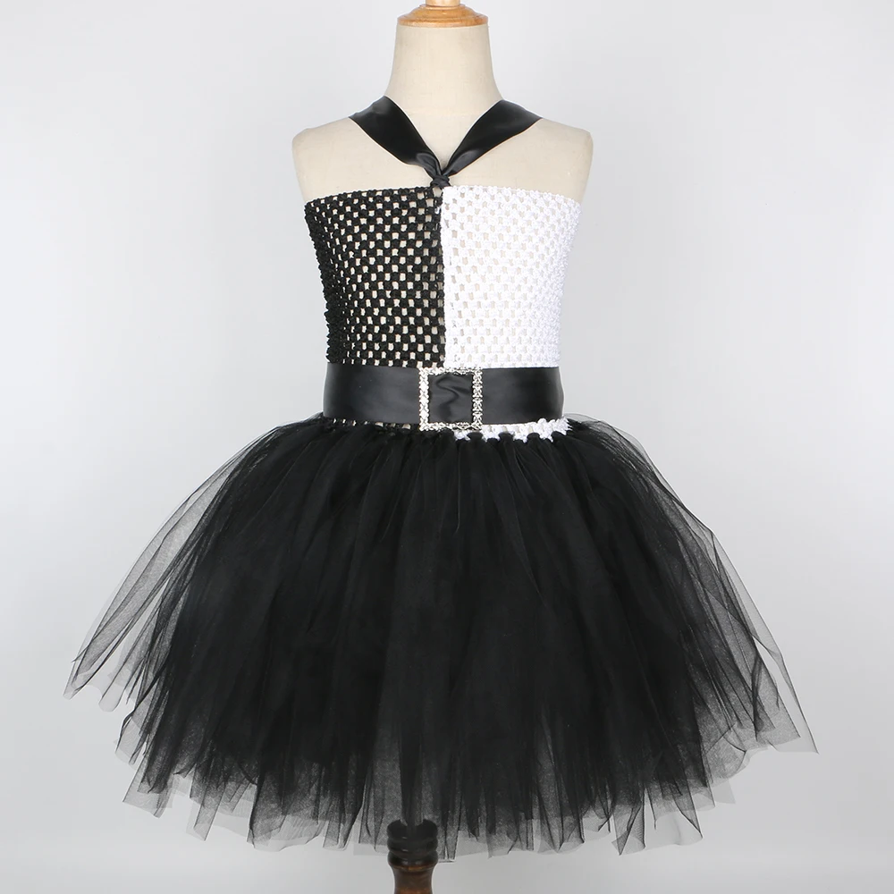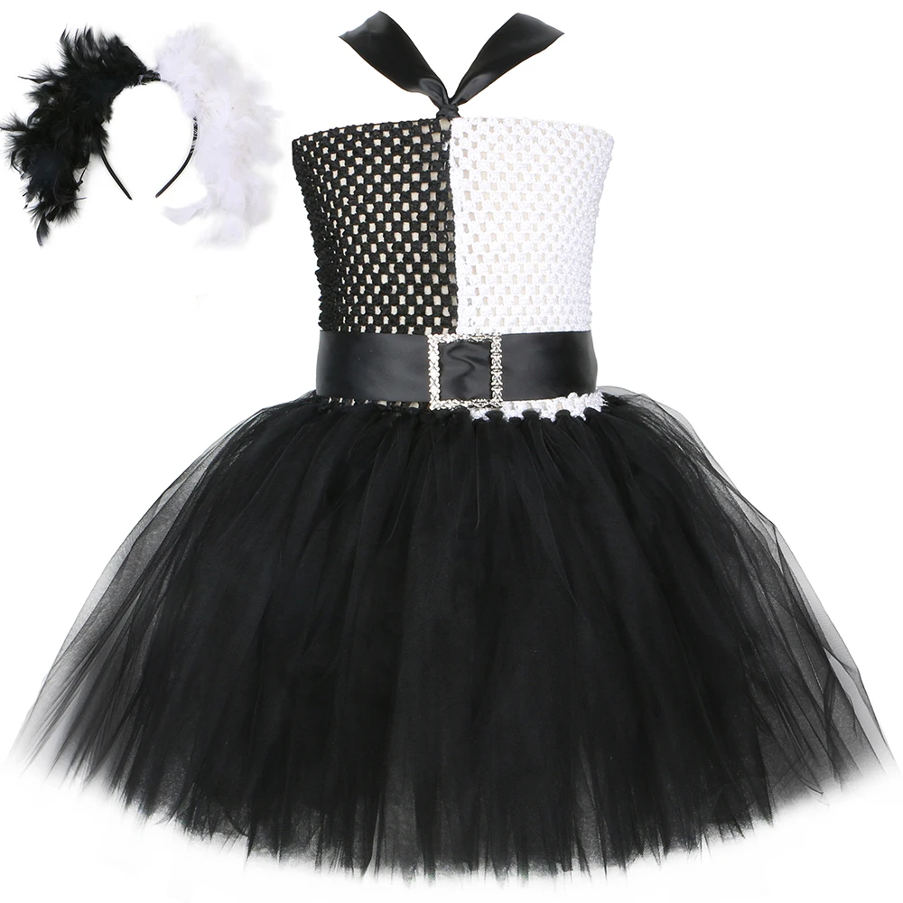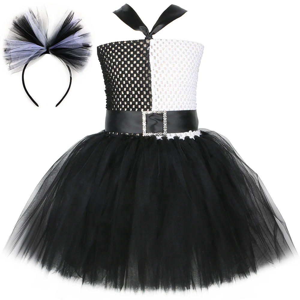 Black White Witchch Cruellala Tutu Dress Girls Fancy Carnival Party Dress Dalmatiansns Cruellala De Villele Cosplay Kids Halloween Costume