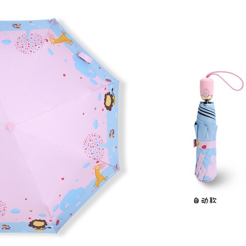 Anime Umbrella Automatic Shrinking Children's Students Vinyl Sunscreen and Sunshade Children Three-folding Umbrella