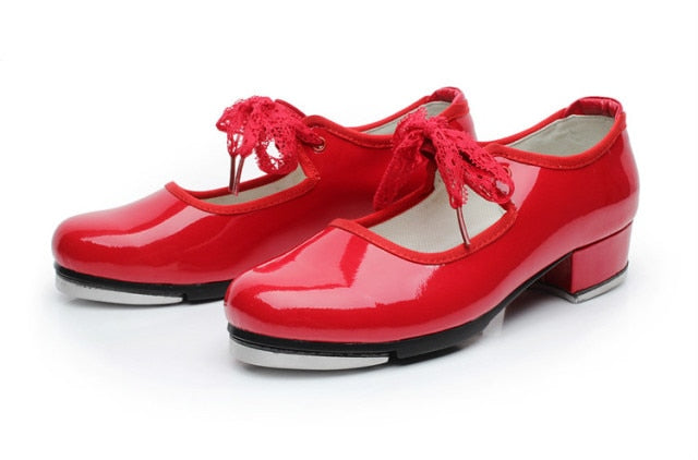 Black White Red Teenagers Kids Tap Dance Shoe Patent Leather Stepdames Shoes Teachers Stage Tap Dancing Shoes For Children Girls