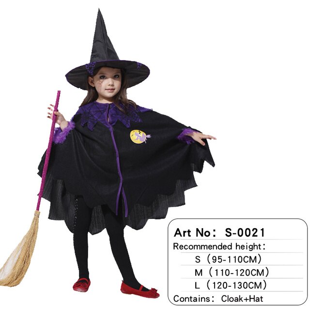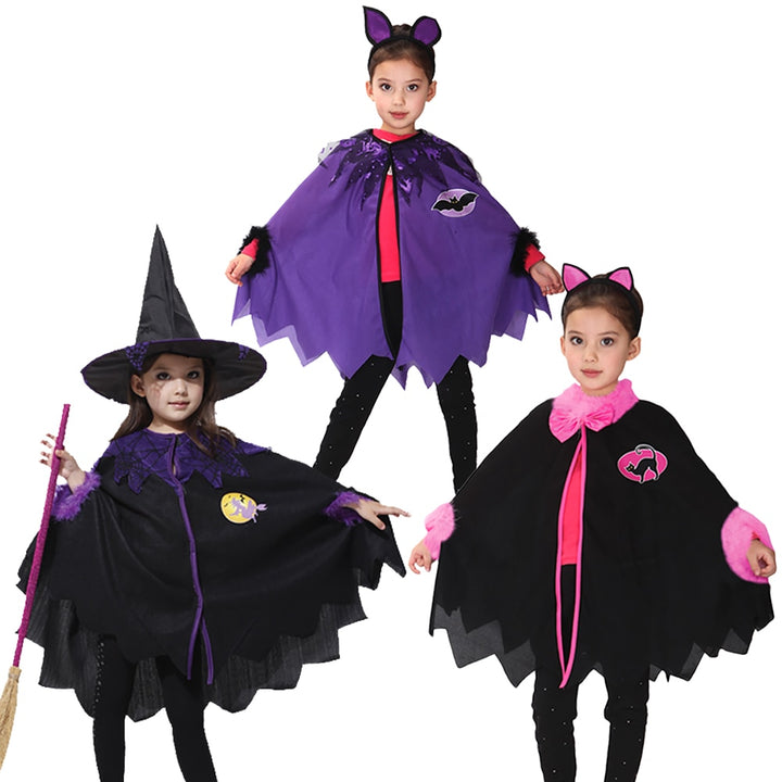 Halloween Party Witch Cloak Gown Robe Cosplay Costumes Coat Cloak Witch Hat Girl Party Costumes for kid Chirstmas