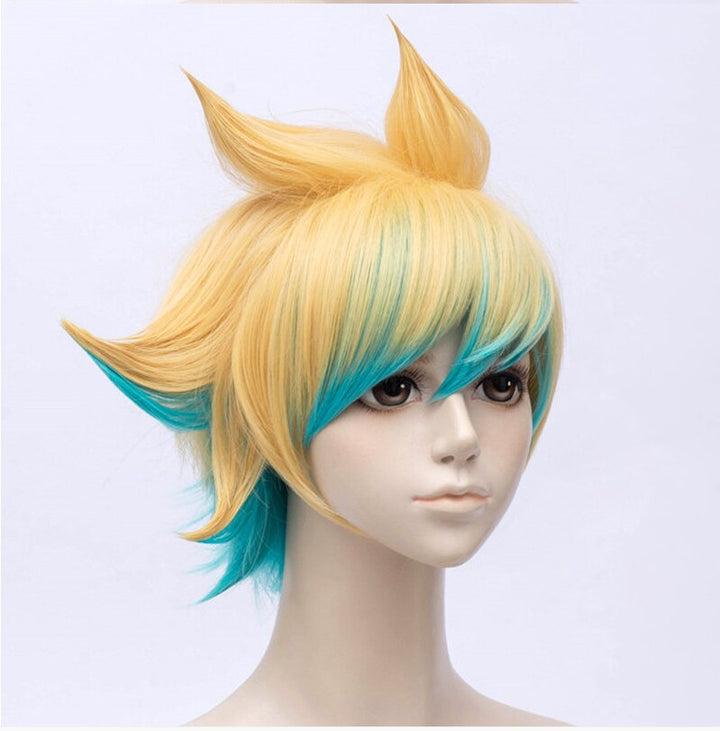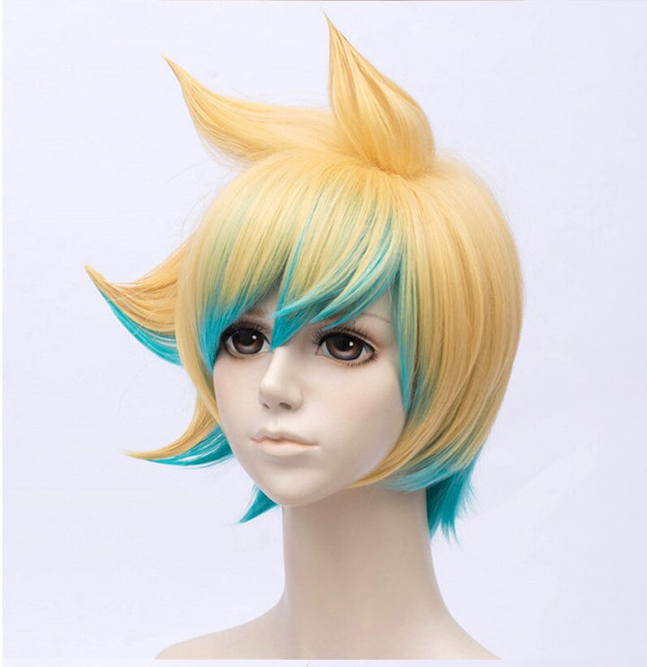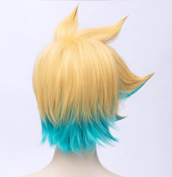 Game LOLs The Prodigalal Explorer Ezrealal Cosplay Wig Short Mixed Colors Gradient Heat Resistant Synthetic Hair Wigs + Wig Cap