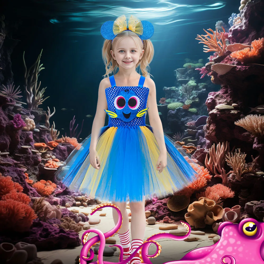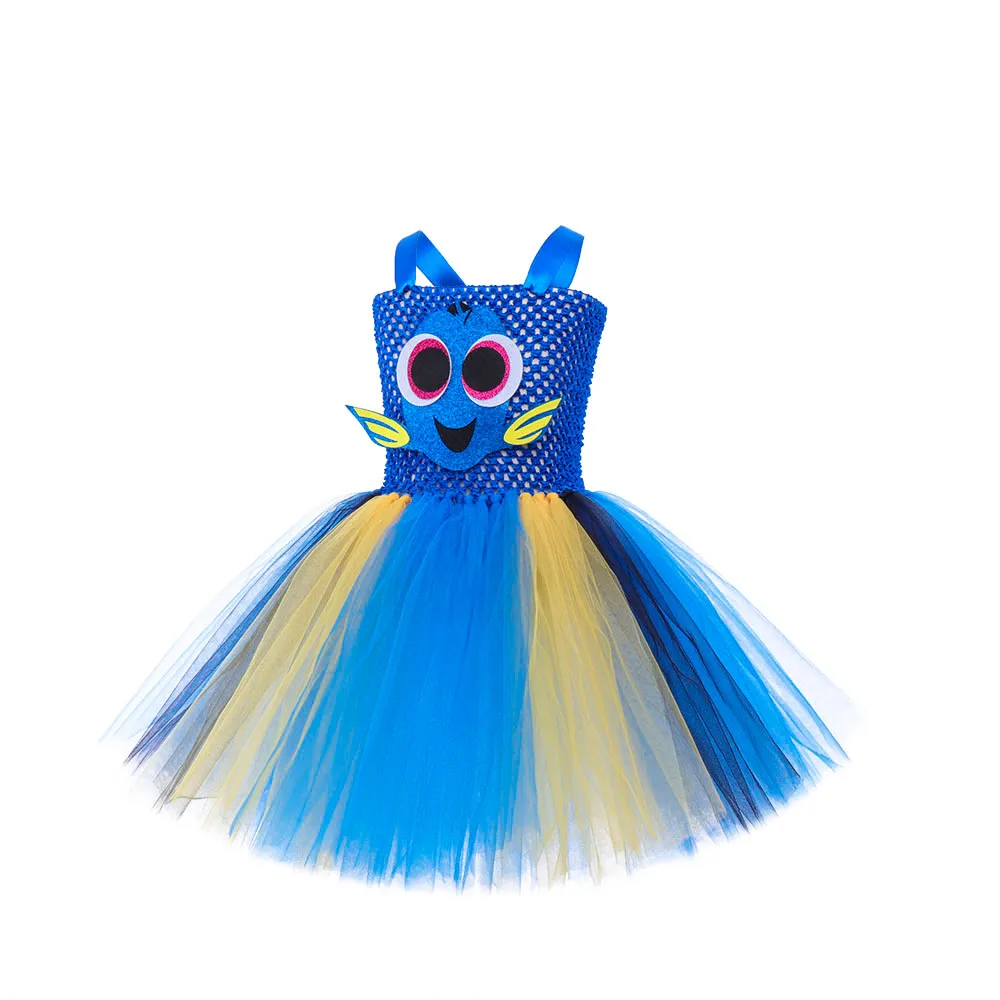 Latest Girls Cartoon a Fish Costume Tutu Dress Kids Tulle Party Dresses Sea Cosplay Costume Fancy Dress Outfit for Baby Birthday