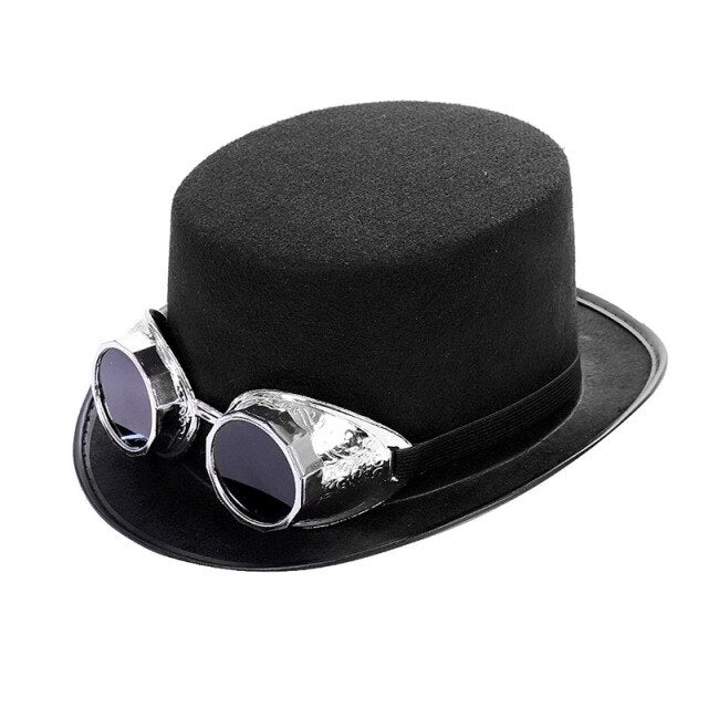 New Carnival party steampunk round top Hat Festival Costumes cosplay Hat with retro glasses for Adult