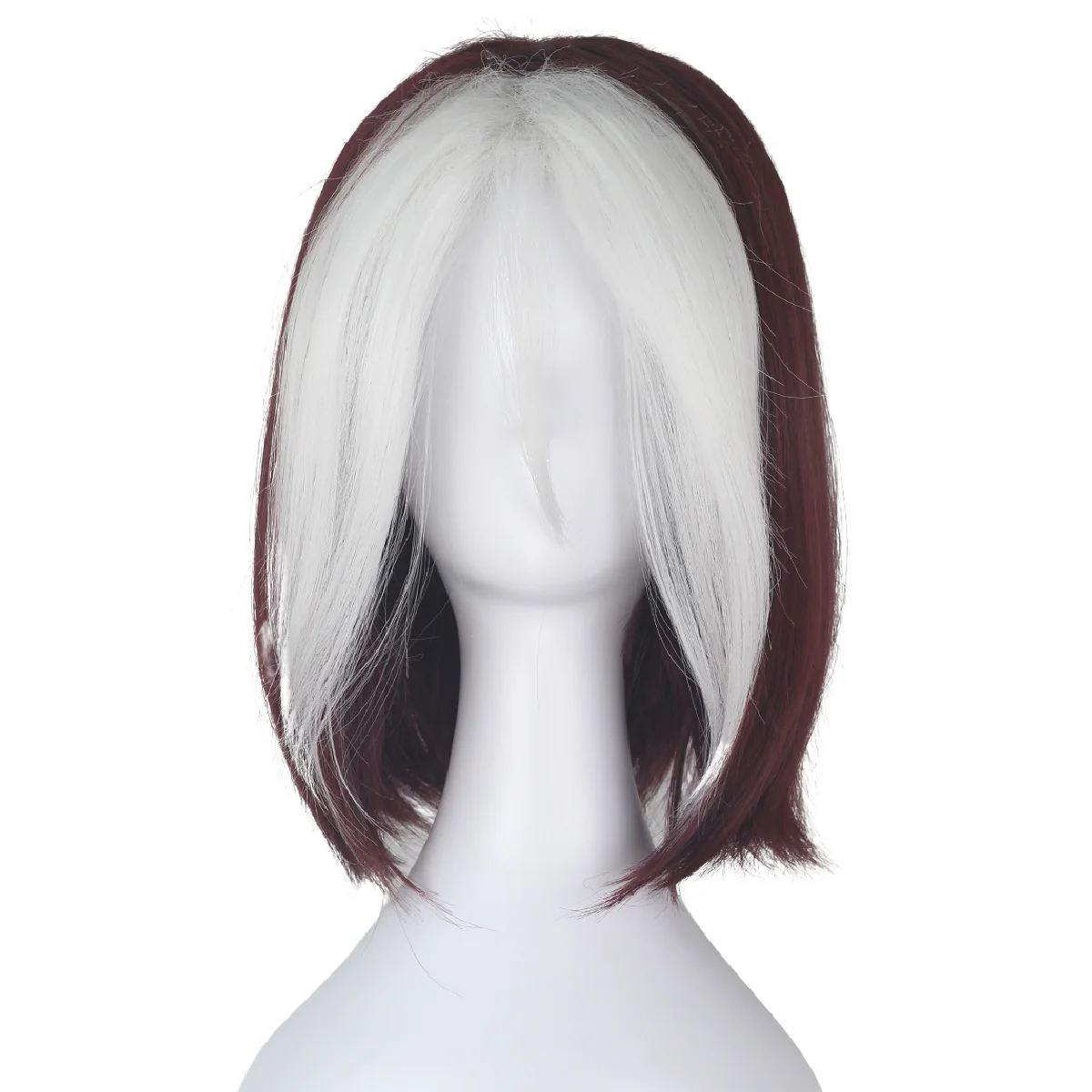 Rogueue Cosplay Wig Short Brown and White Color Halloween Costume for Women Synthetic Heat Resistant Fiber