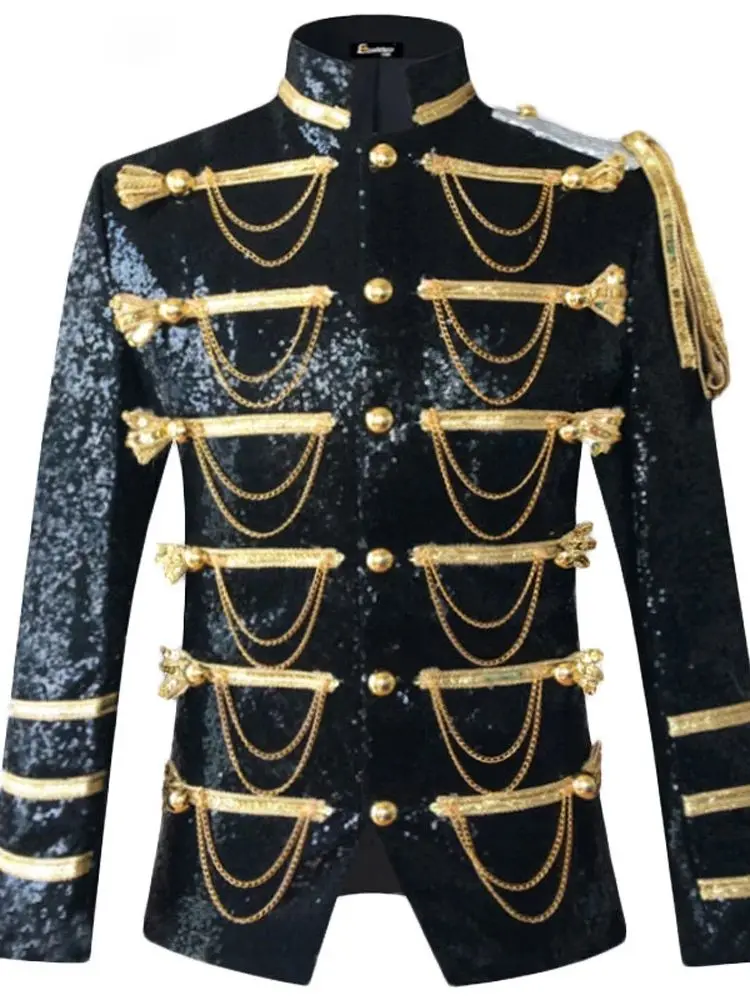 Sequin Embellished Blazer Jacket Men Stage Show Party Men Suit Jacket Military Dress Tuxedo Men Blazer Singer DJ Costume