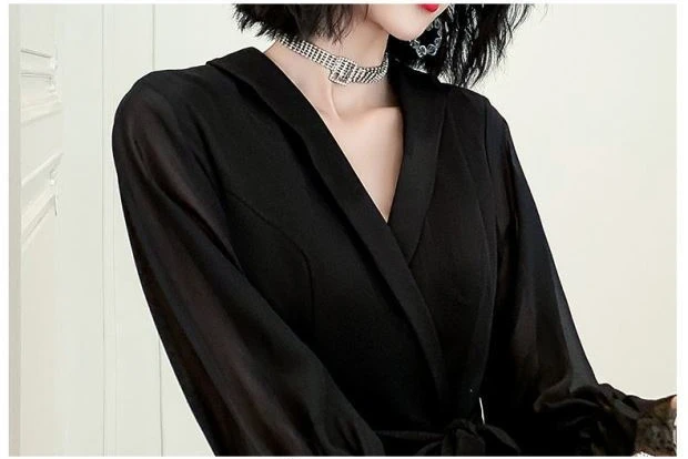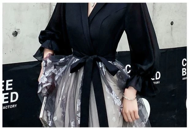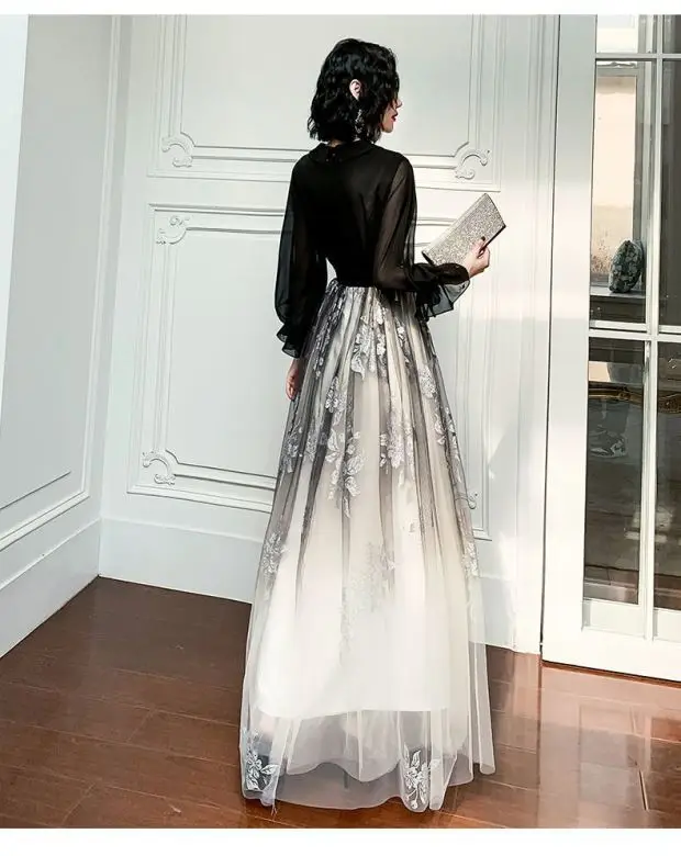 V-neck Simple Elegant Long Lantern Sleeve Prom Dress Lace-up Slim Waist Mesh Tierd Formal Vestidos Temperament Evening Dresses