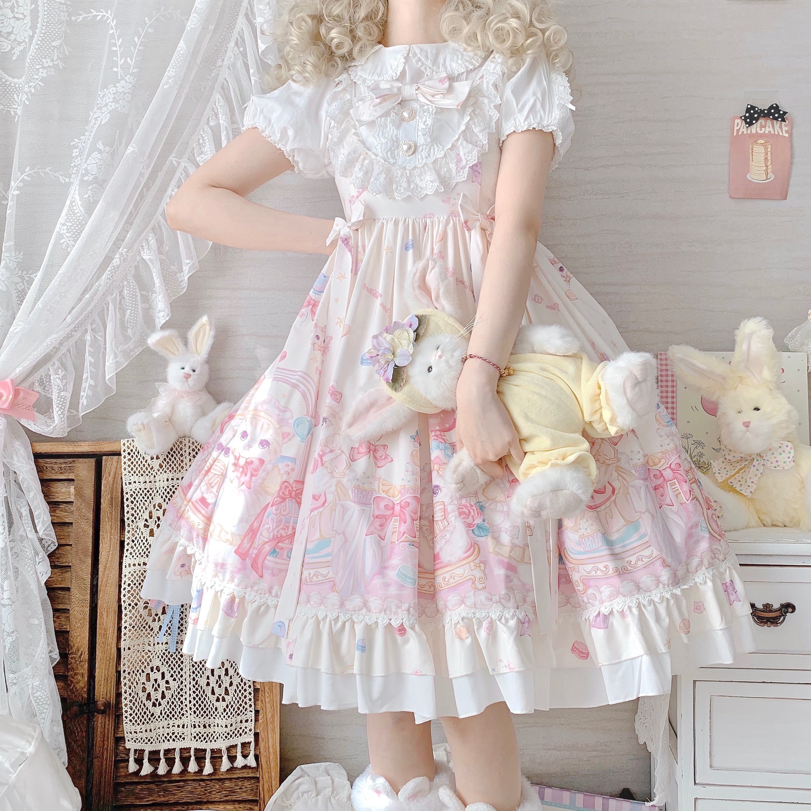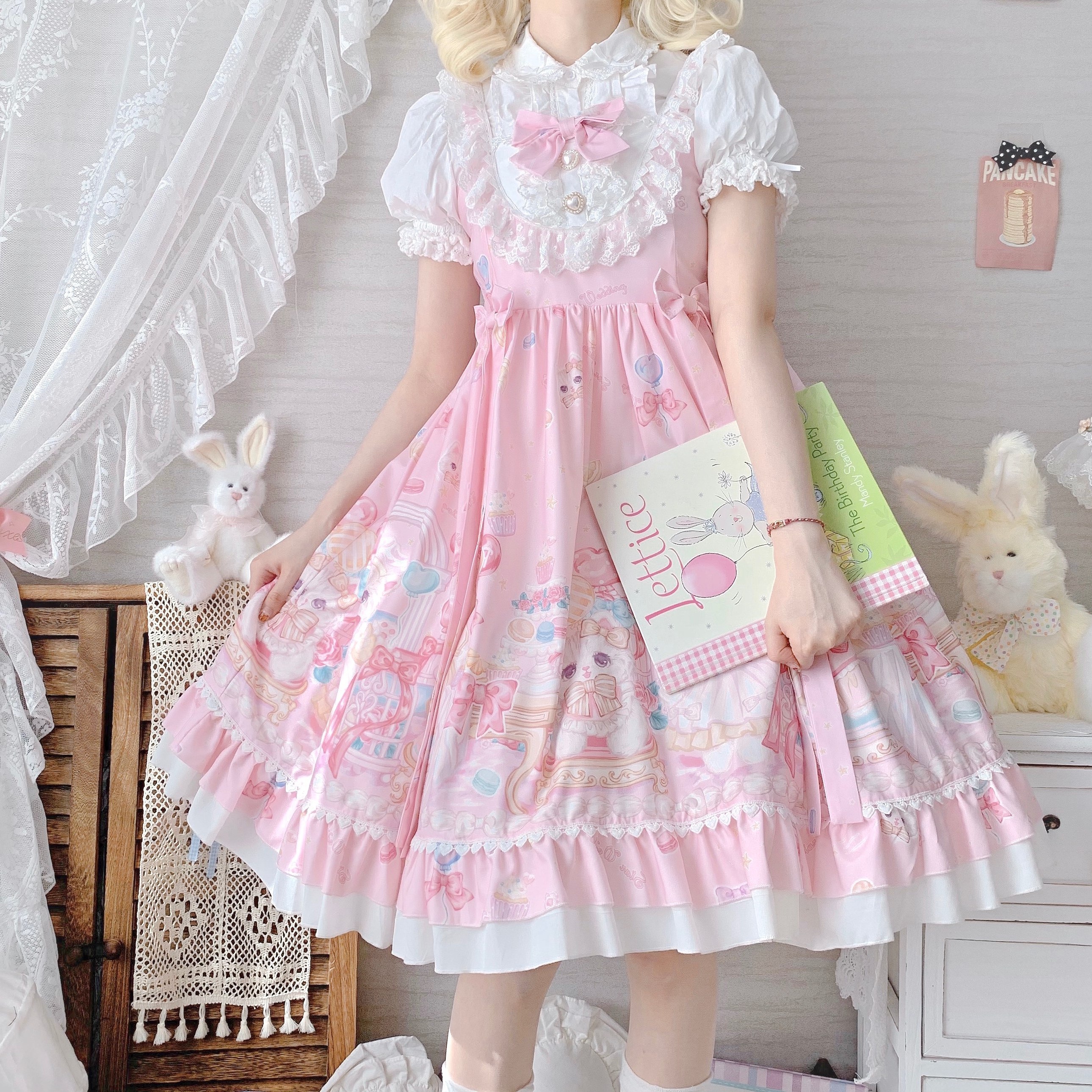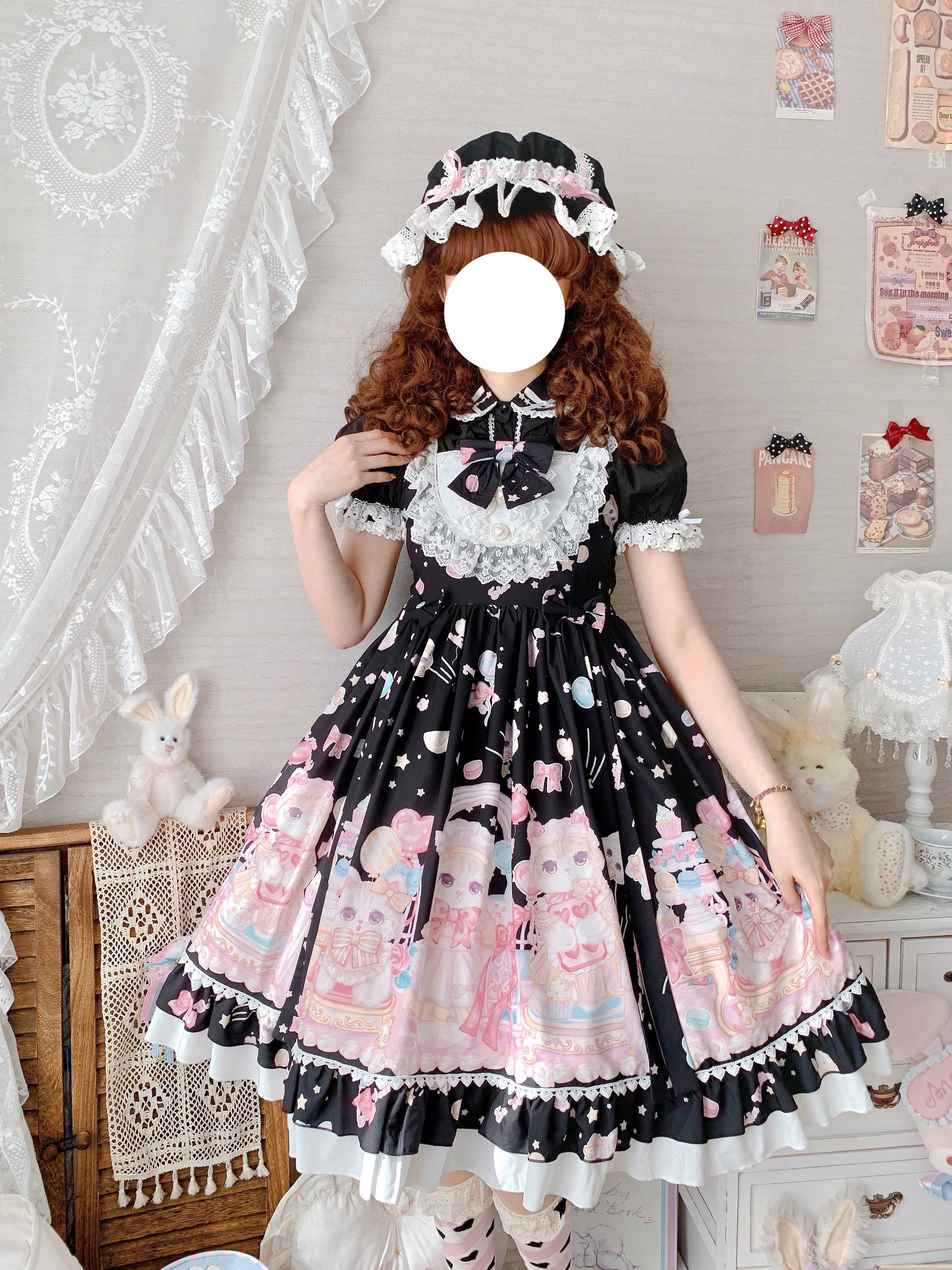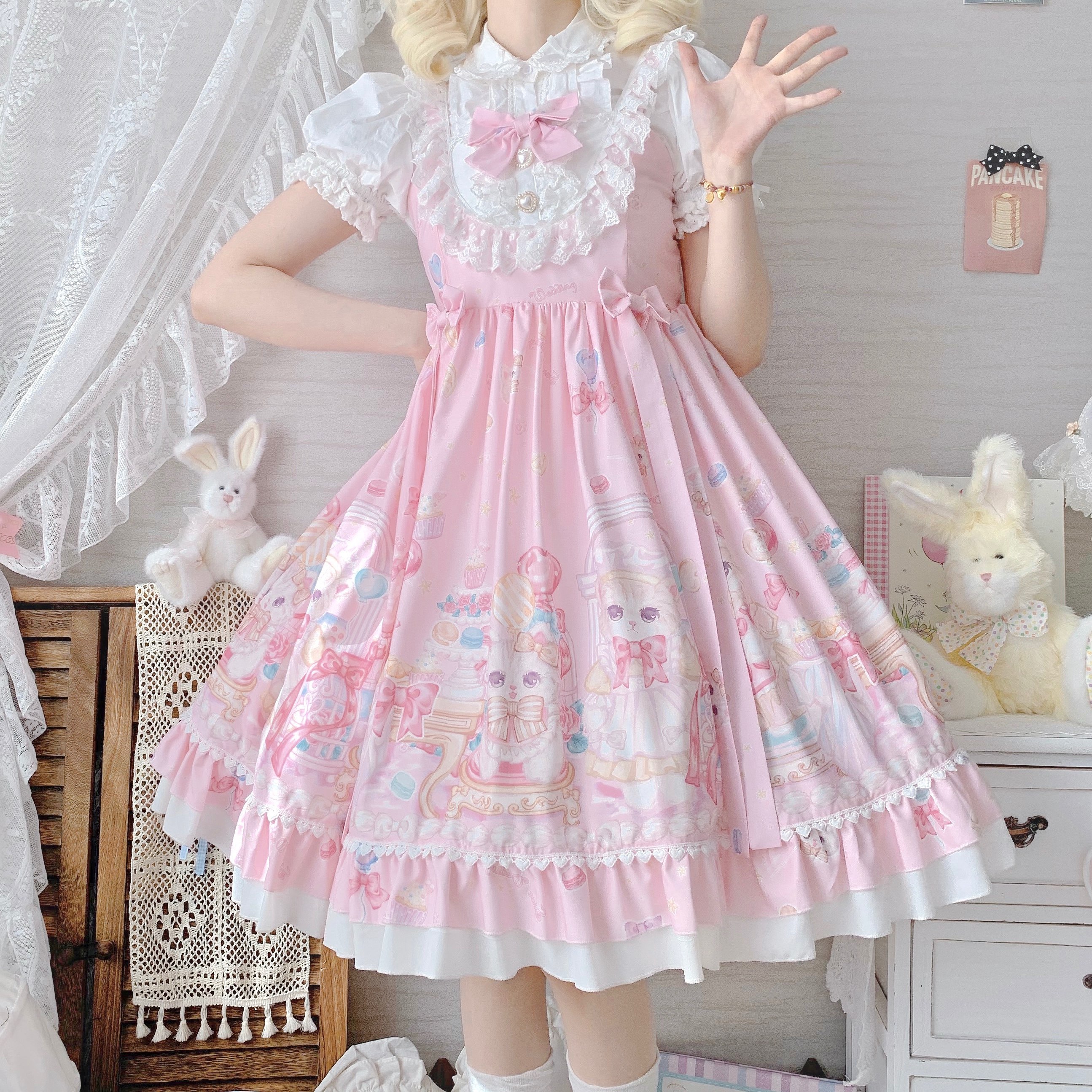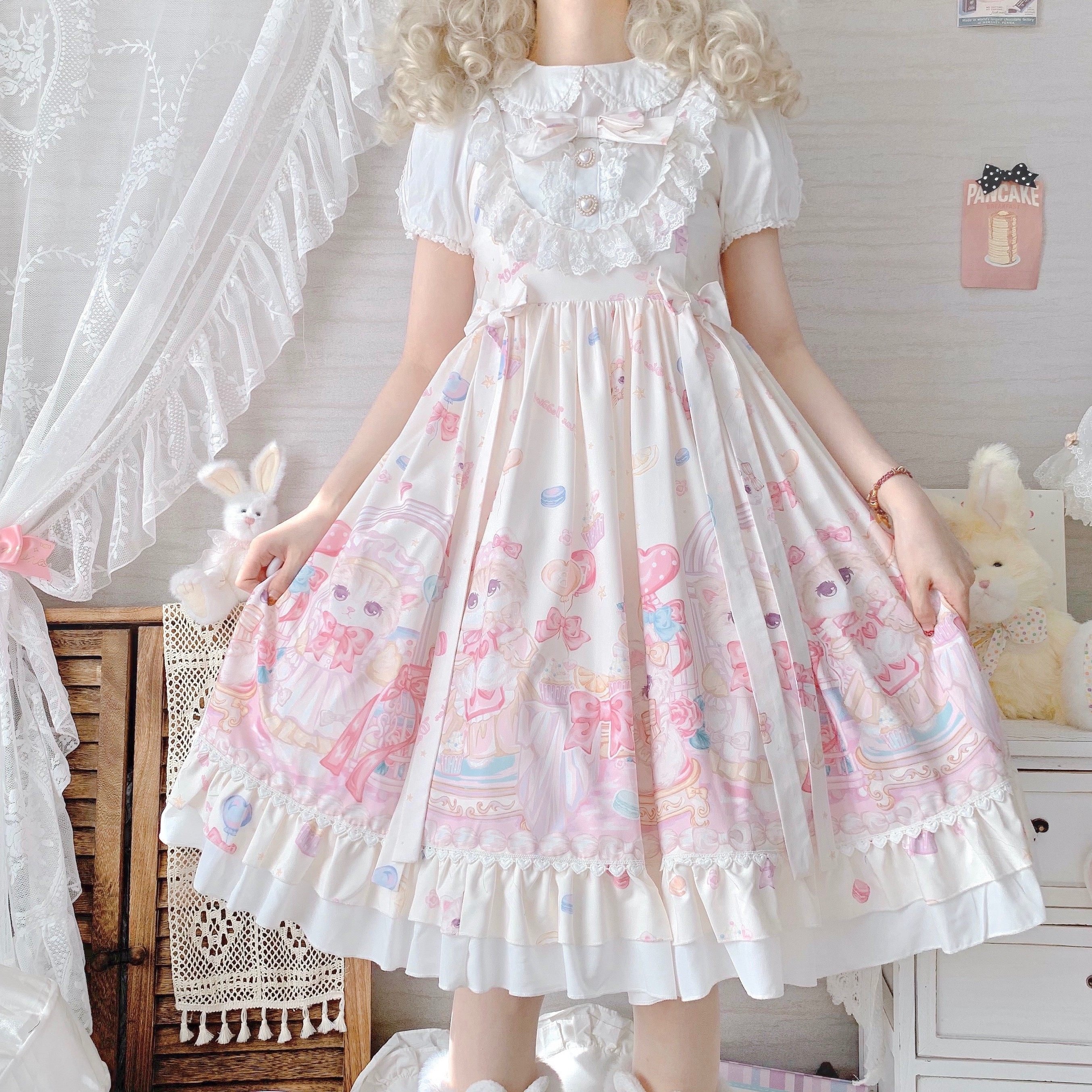 Japanese Women Lolita Sleeveless Sweet Women Dress Summer Autumn Straps Bow Cat Cartoon Printed Jsk Dress Ruffles Anime Sundress