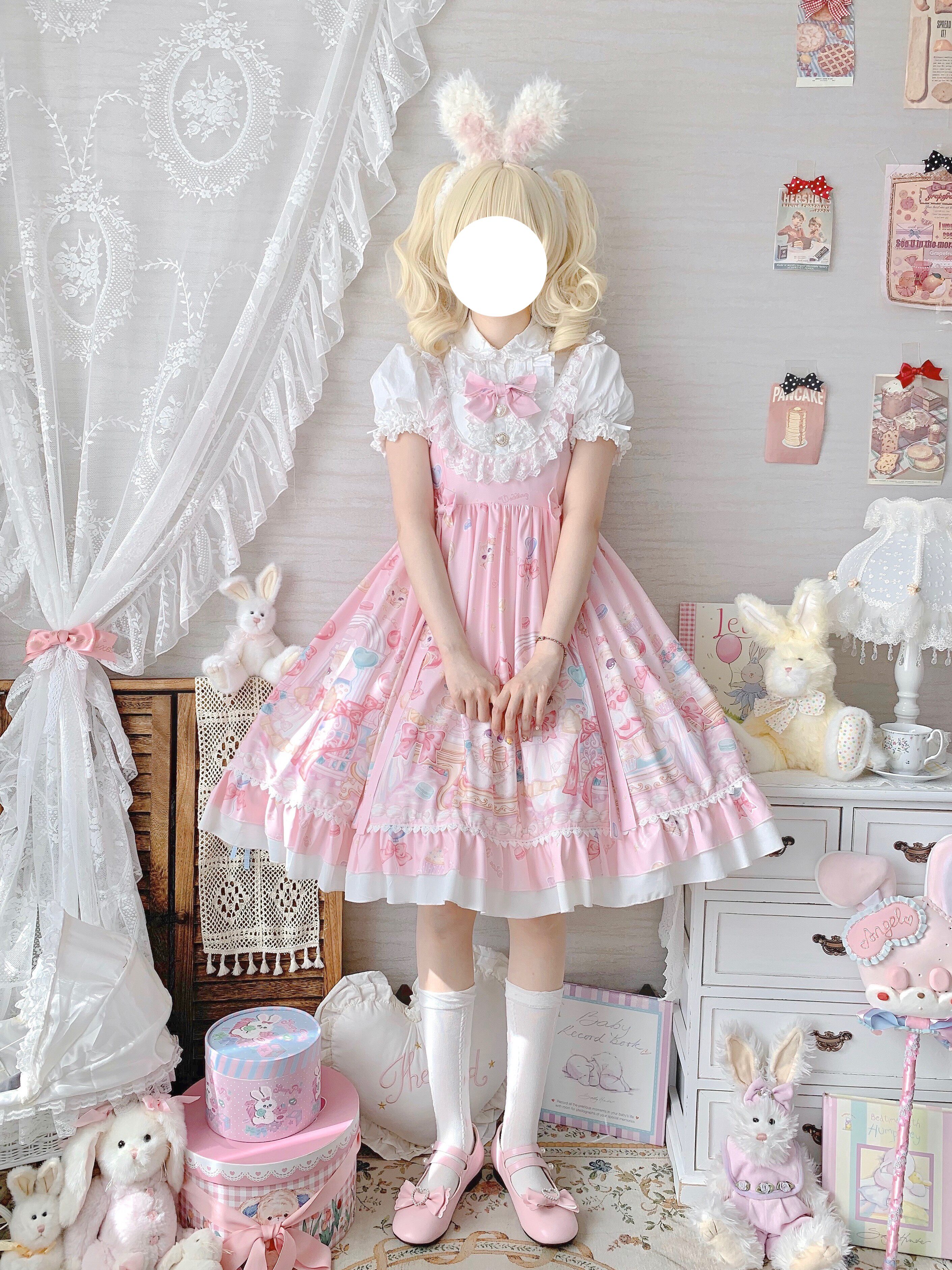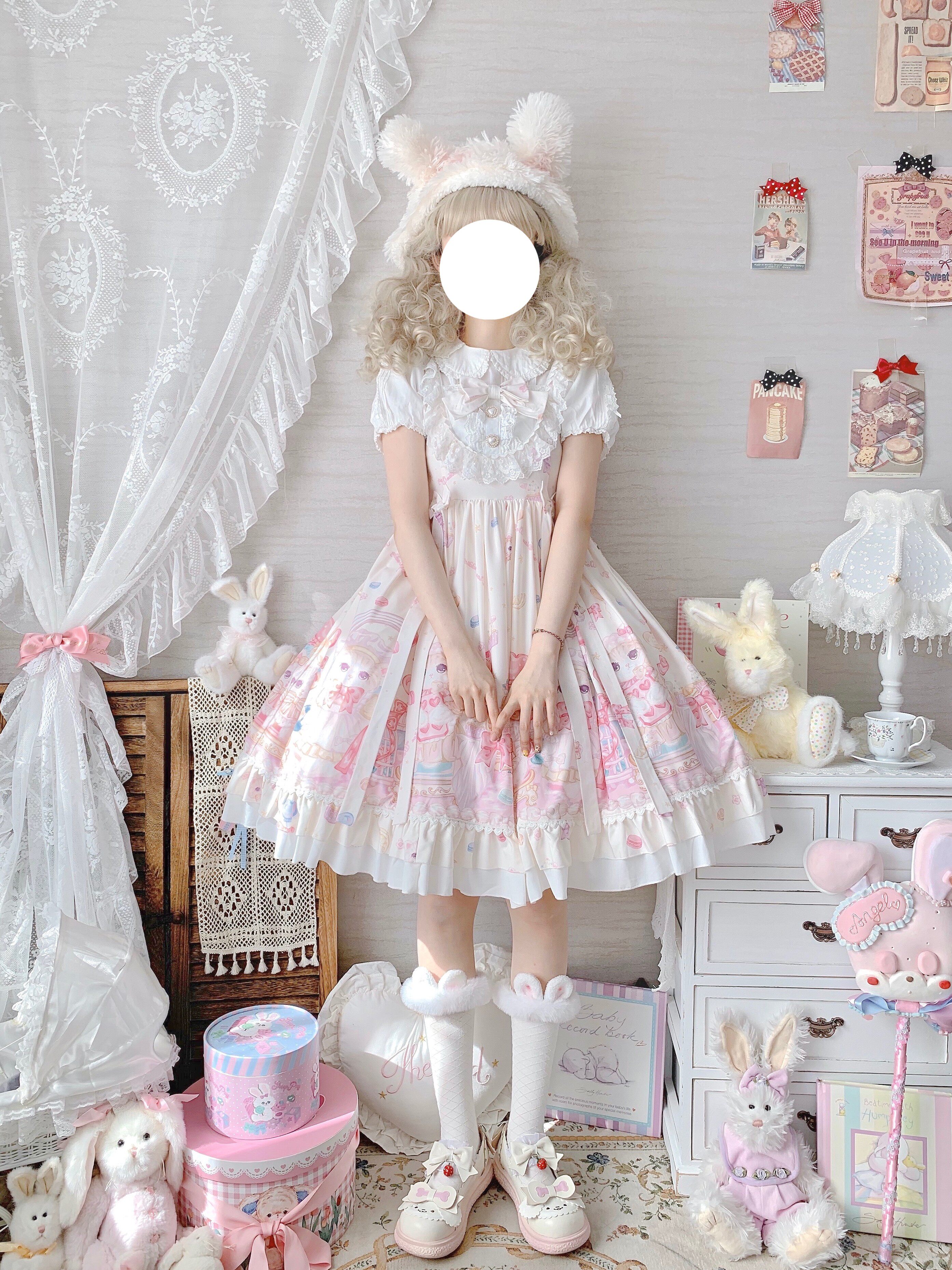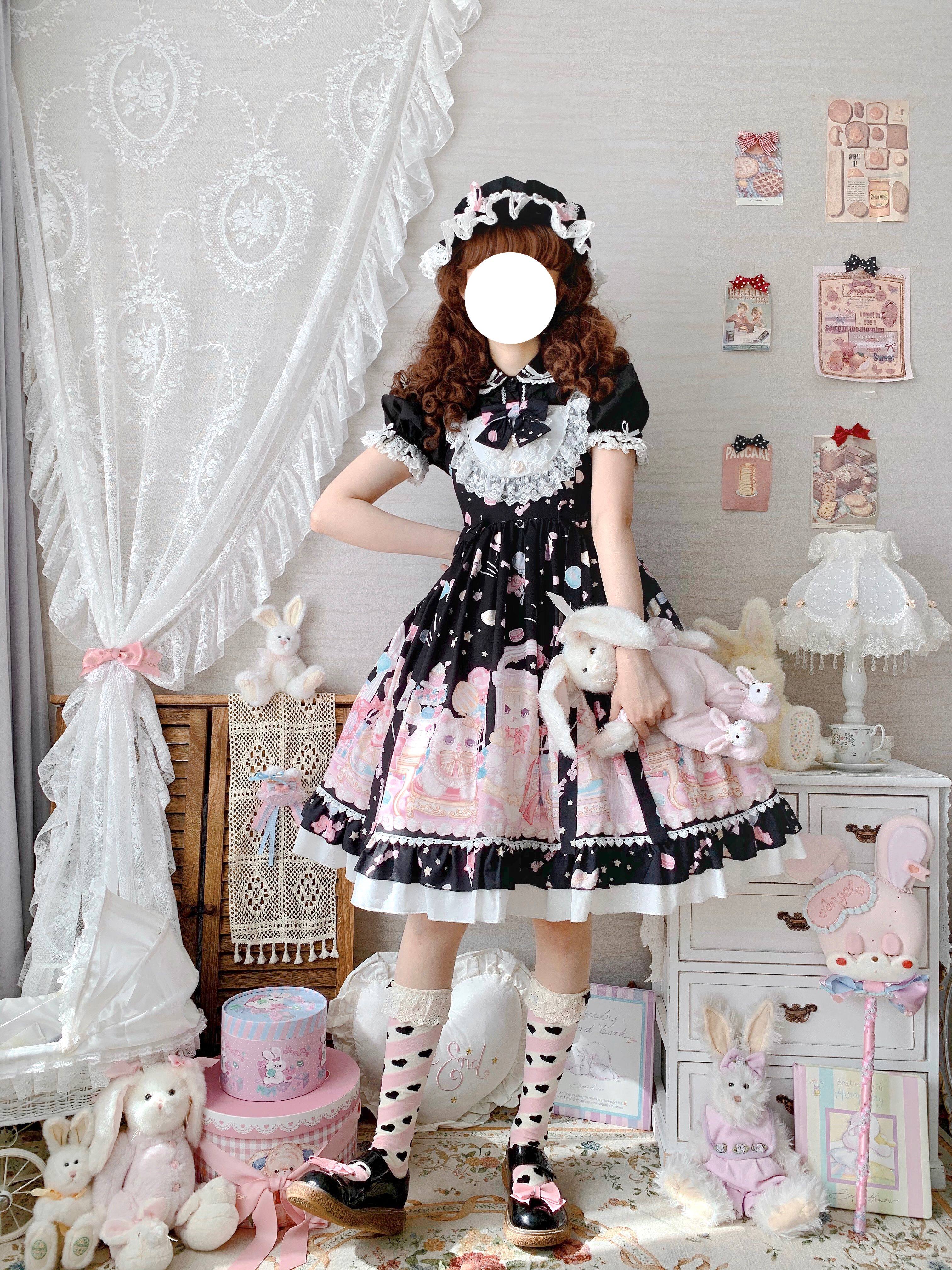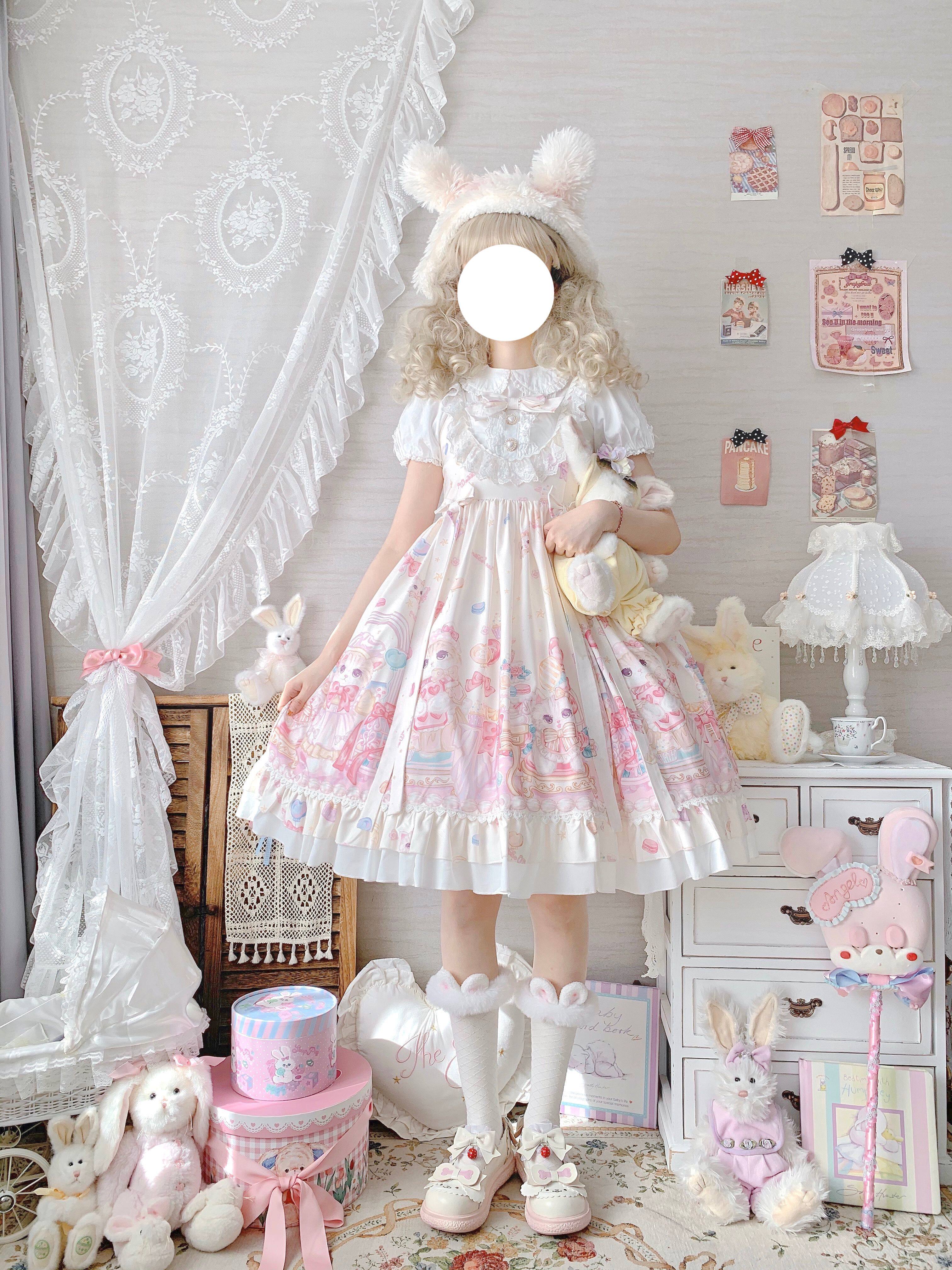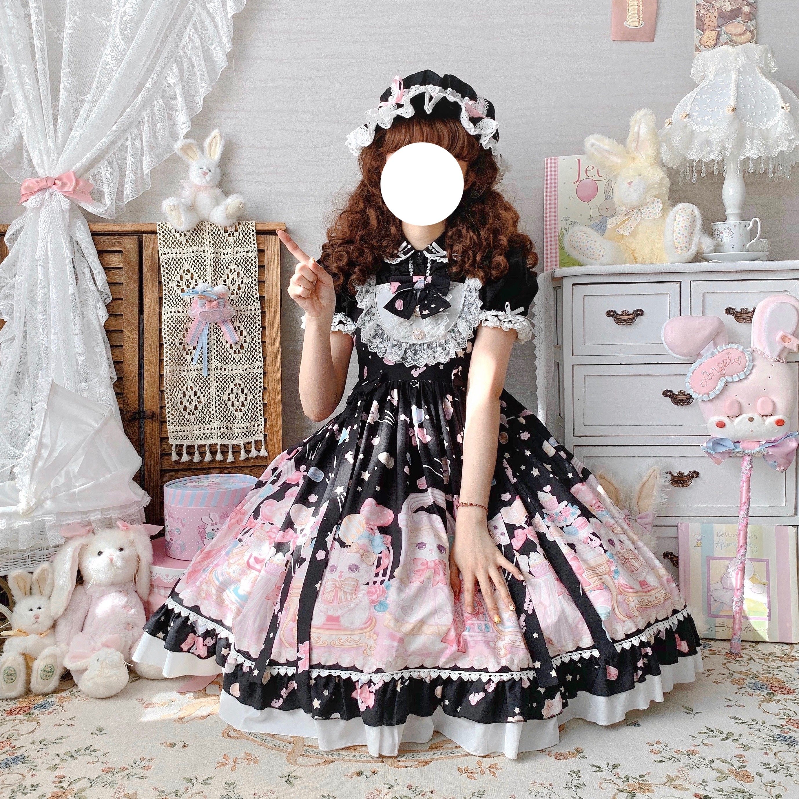 Japanese Women Lolita Sleeveless Sweet Women Dress Summer Autumn Straps Bow Cat Cartoon Printed Jsk Dress Ruffles Anime Sundress