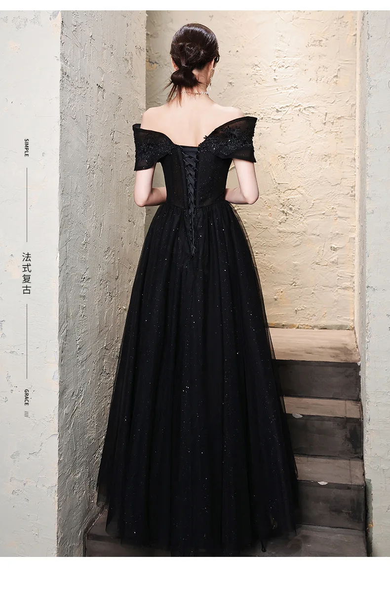 Slash Collar Off The Shoulder Party Dress Appliques Sequined Vestidos Elegantes 2024 Summer Back Cross Lace Up Evening Dresses