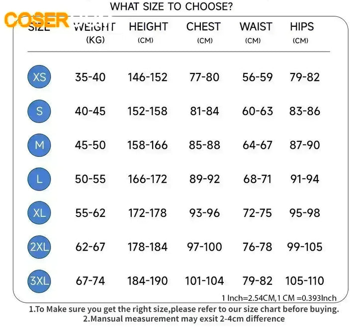 As all of our costume is hand-sewn, the finished costume may vary by approximately one (1-2) inch in either direction of the specified measurements.