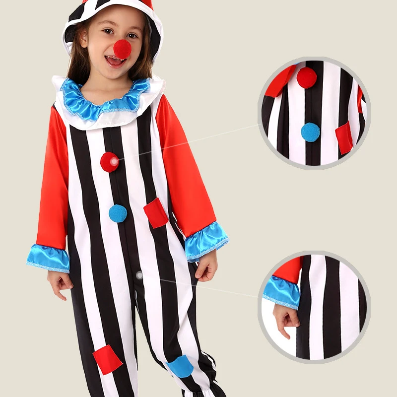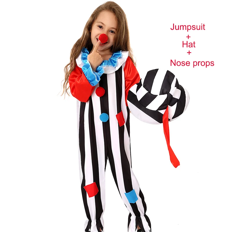 Funny Clown Striped Jumpsuit Cosplay Costumes Children Role Playing Stage Performances Boys Girls Party Clothings