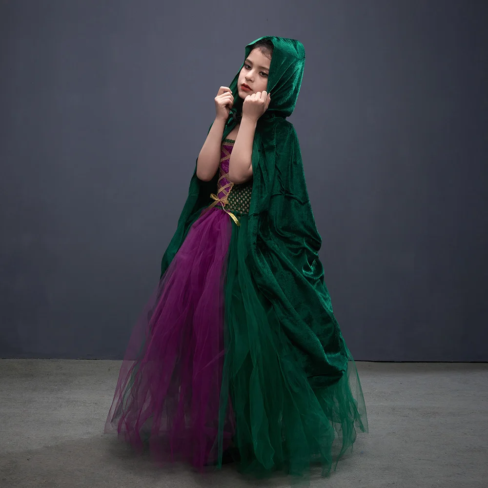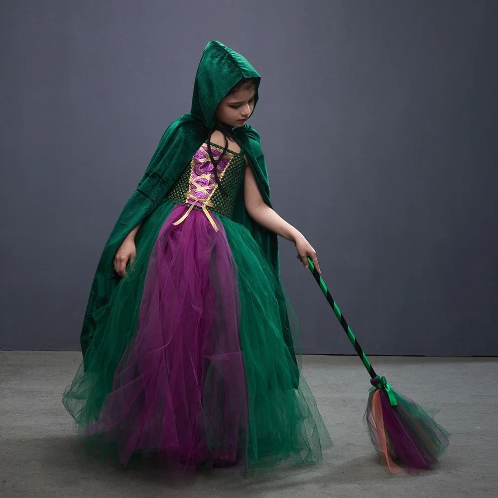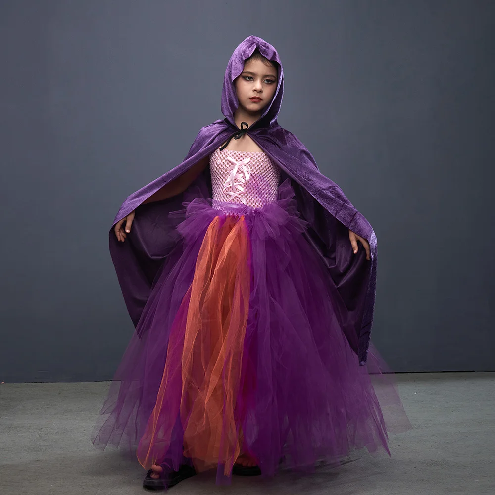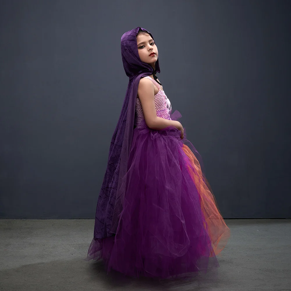 Girls Hocusus Disguisese Pocusus Salemlem Witch Sisters Costume Kids Halloween Fancy Gown Tutu Dress With Cape For Cosplay Party Outfit