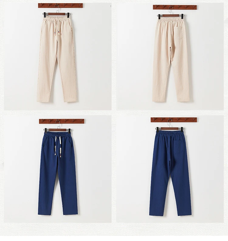Linen Zen Tea Tee Tops Pants Kung Fu Uniform Oriental Fashion Casual Loose T-shirt Chinese Retro Style Tang Suit Men Trousers