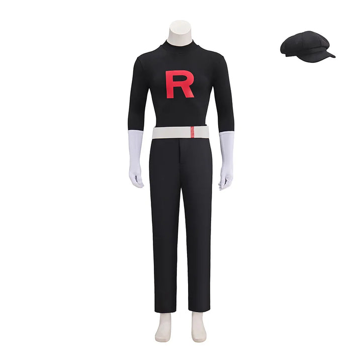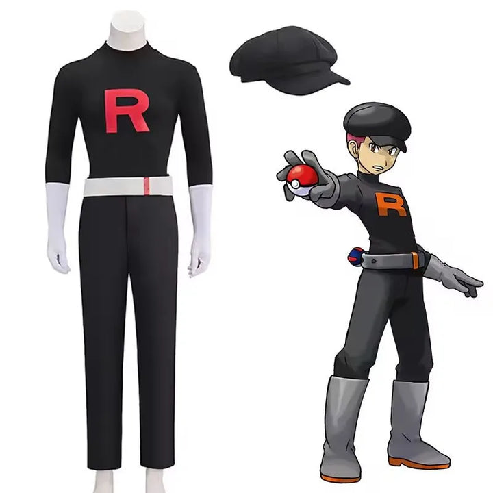 Team a Rocket Gruntnt Cosplay Costumes Anime Black Uniform Hat Halloween Carnival Party Outfits
