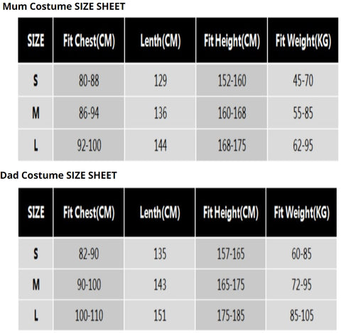As all of our costume is hand-sewn, the finished costume may vary by approximately one (1-2) inch in either direction of the specified measurements.