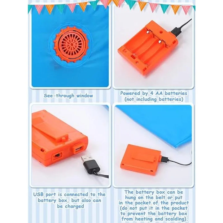 Make sure to use the included air pump or mobile power supply to fully inflate the garment. Make sure you have extra batteries on hand, or pay close attention to battery life throughout the event to ensure continuous charging.
