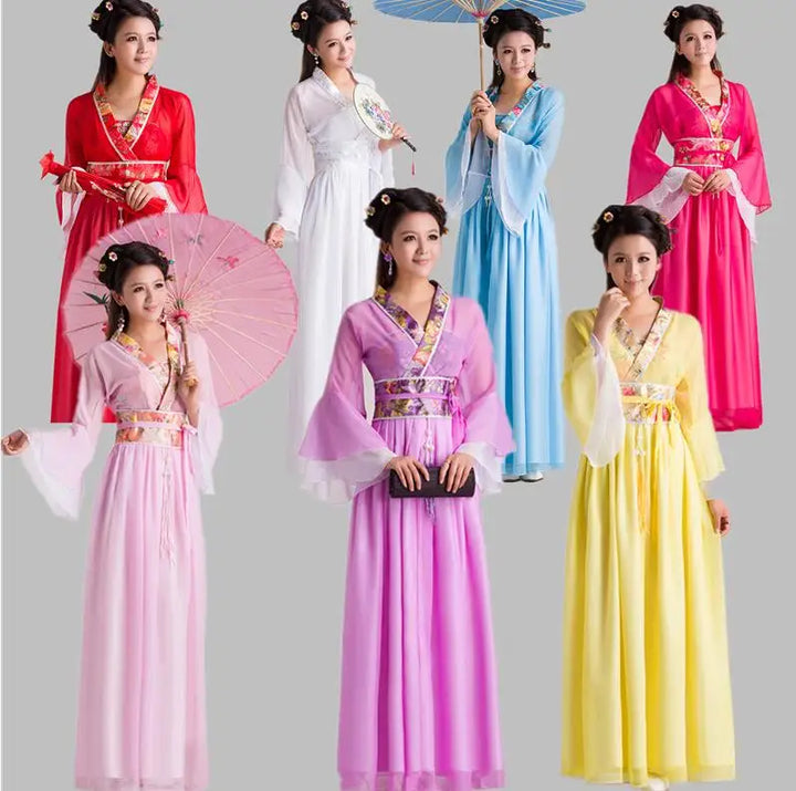 2018 new ancient chinese costume women folk dance costume for woman hanfu women new year Fan clothing costumes
