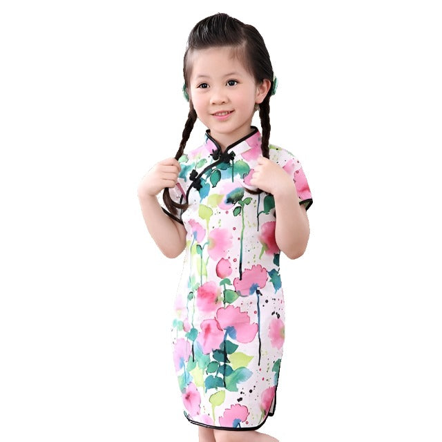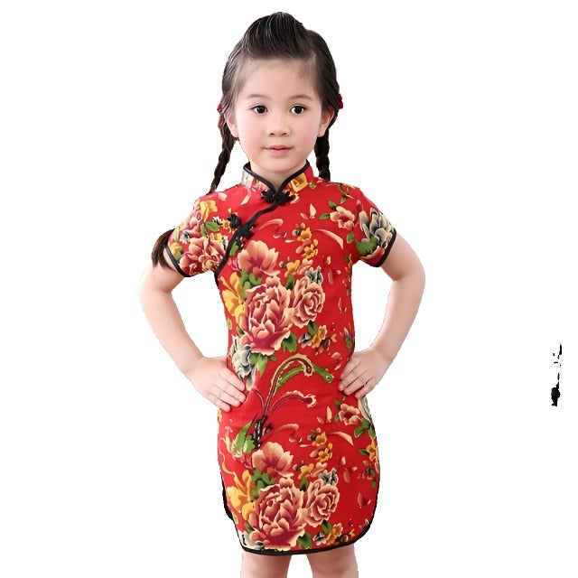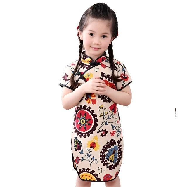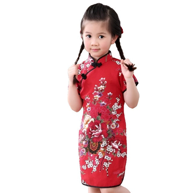2021 baby girl Chinese dress clothes summer style infantis cotton&L Traditional dresses red new year party qipao