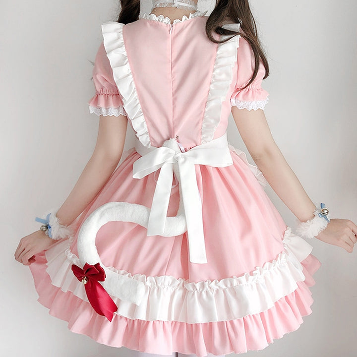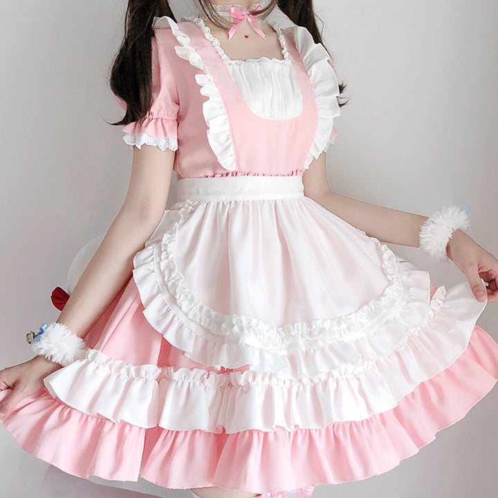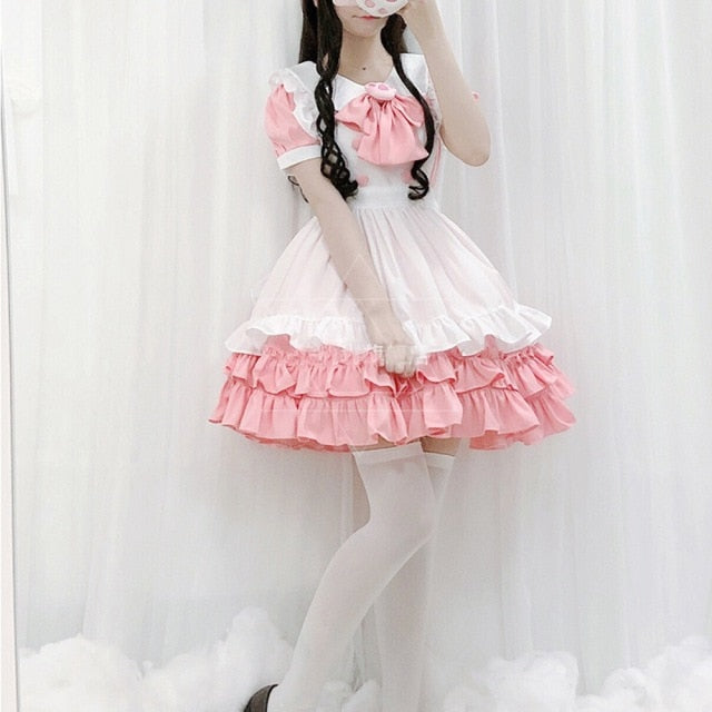 2021 Summer Sweet Lolita OP Maid Dress Pink Soft Girl Women Princess Dresses Kawaii Cosplay Costume Loli