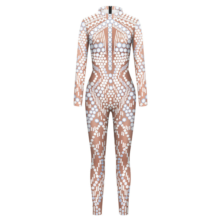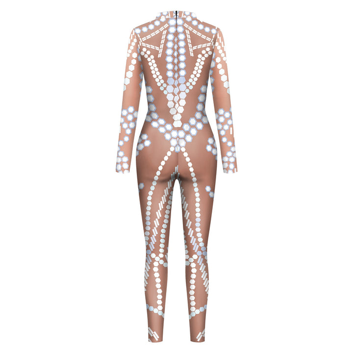 2023 Summer New Women's Dress Performance Dress Imitation Sequin Pattern Digital Printing Tights One-piece Dress Women Jumpsuit