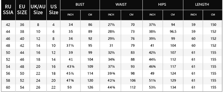 As all of our costume is hand-sewn, the finished costume may vary by approximately one (1-2) inch in either direction of the specified measurements.
