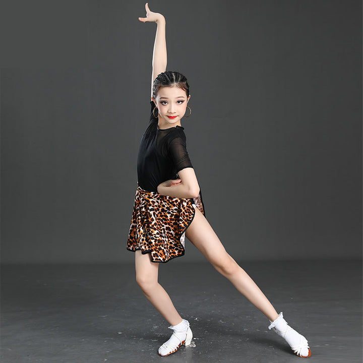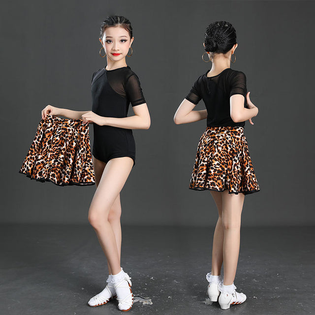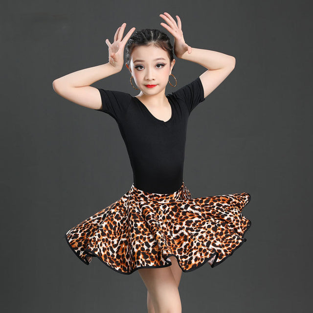2Pcs Dance Costumes 2022 New Kids Child for Girls Dance Dress Tassel Skirt Short Short Long Sleeve Leopard Print Performance