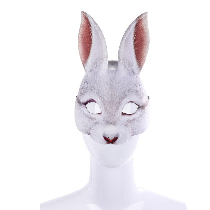 3D Party Animal Realstic EVA Black And White Adult Anime Face Cosplay Masquerade Bunny Ears Rabbit Mask