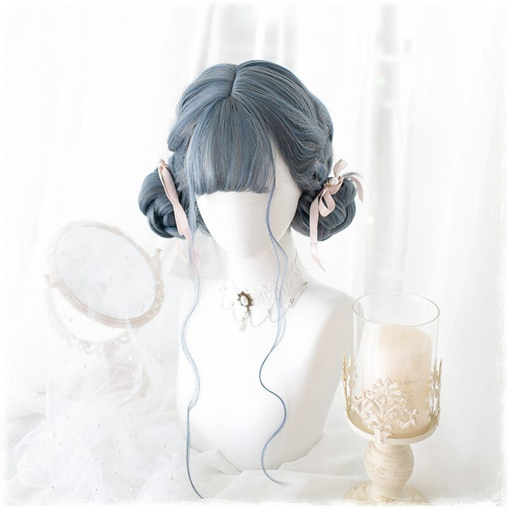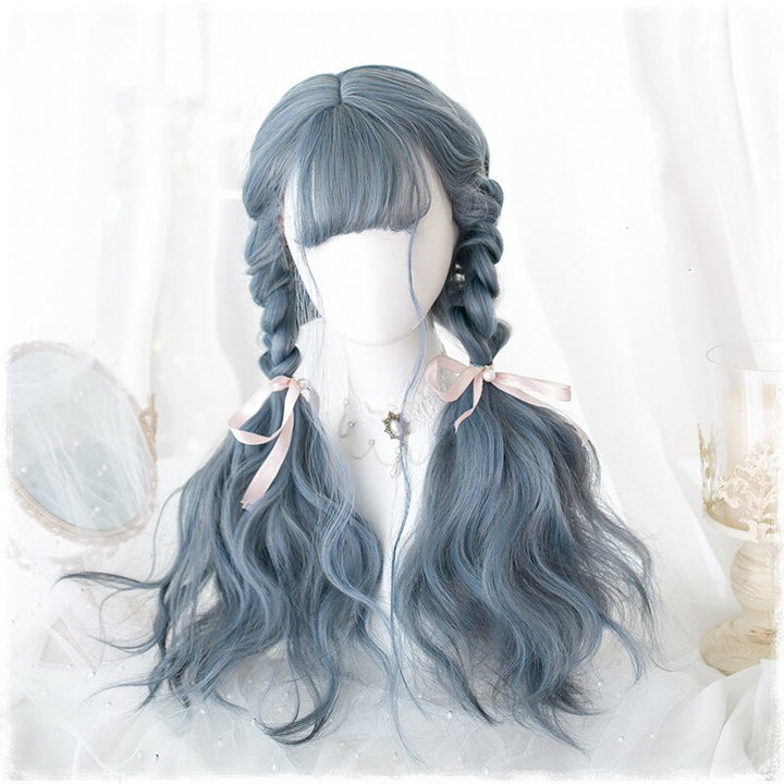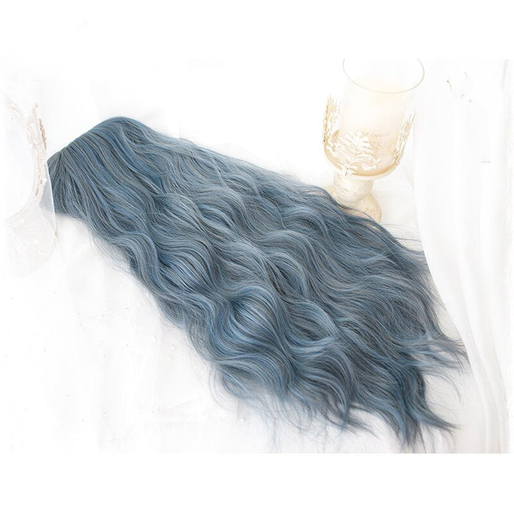70cm Long Blue Mix Grey Hair Lolita Women's Wigs Dusty Blue Wavy Harajukuku Cosplay Wig Heat Resistant Synthetic Wigs + Wig Cap