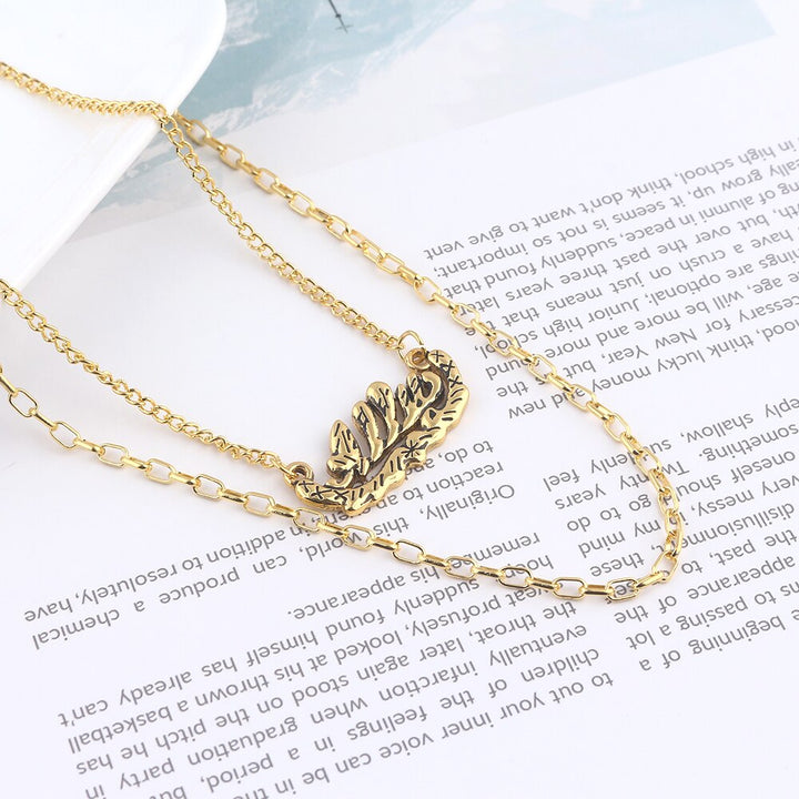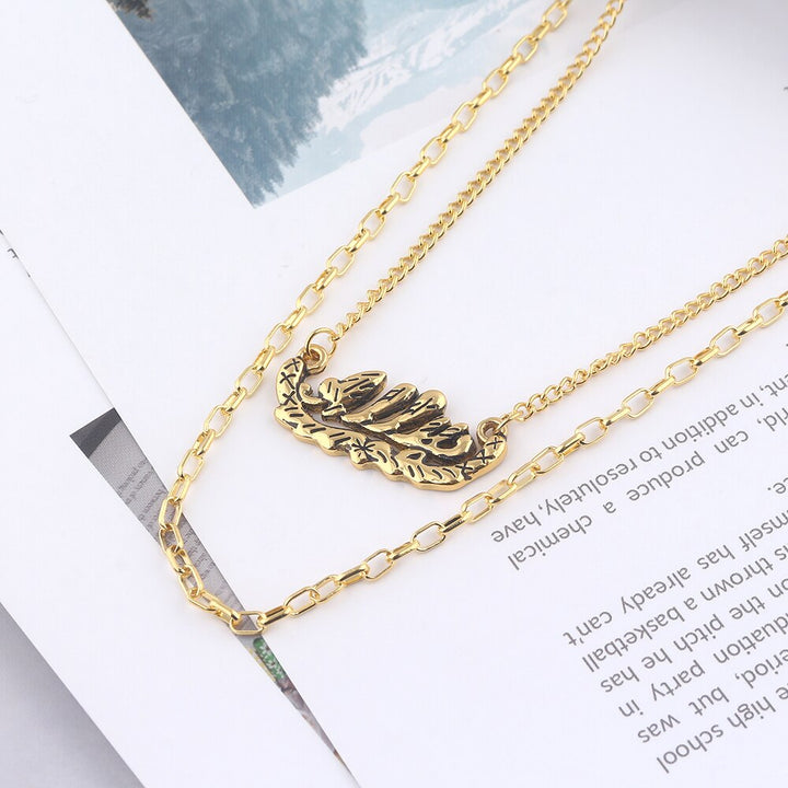 A Star Born Gold Leaf Necklace Metal Double Layered Belt Clavicle Chain Sweater Dress Accessory Jewelry Gift