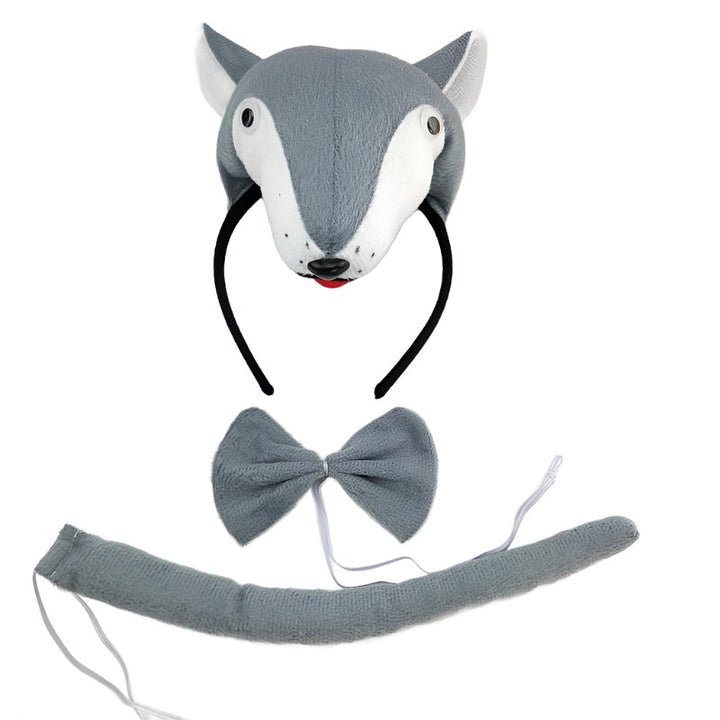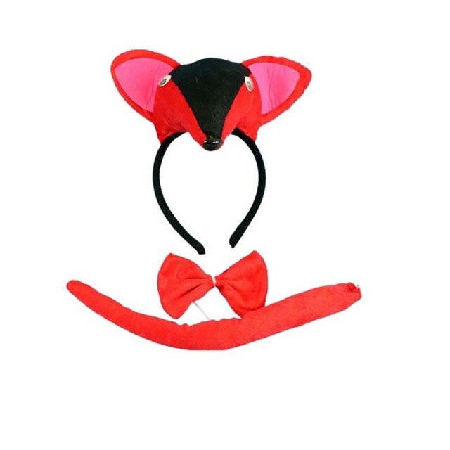Adult Child Boy Animal Fox Wolf Headband Tie Tail Cosplay Set Props Halloween Costume for Kids Birthday Party Gift Christmas