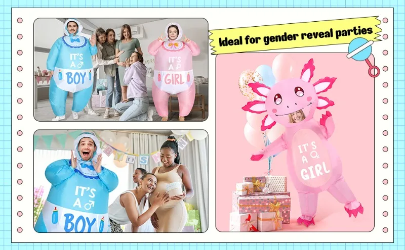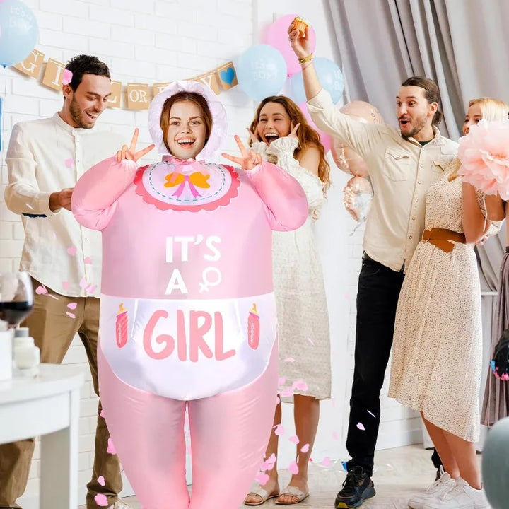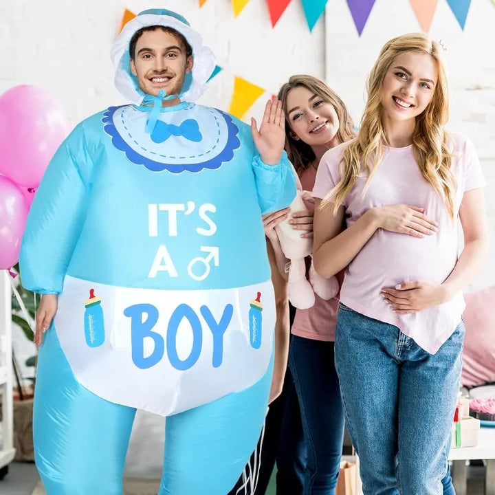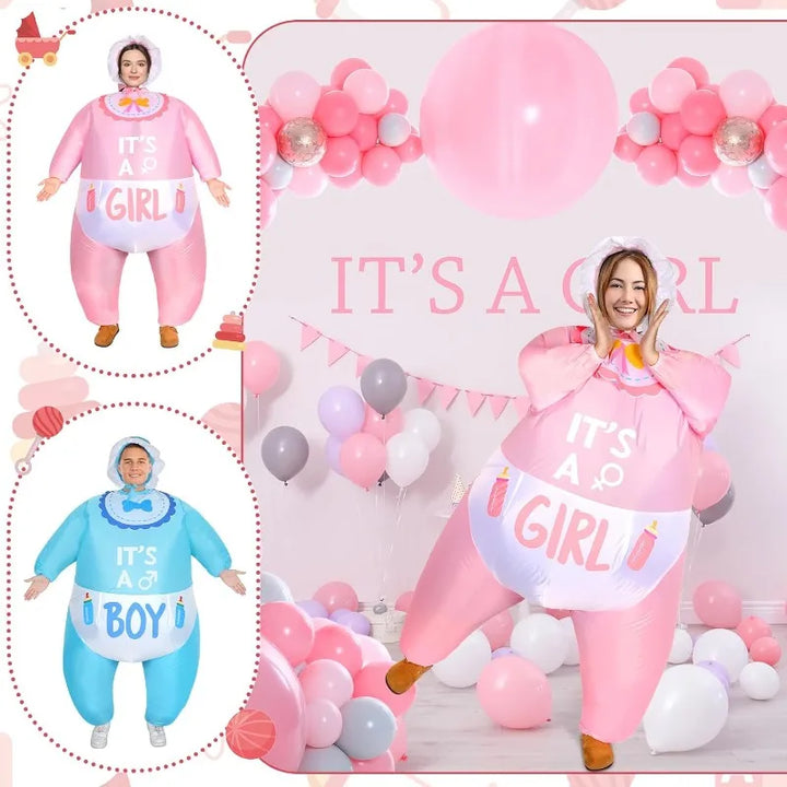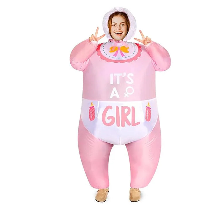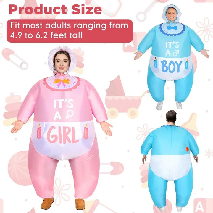 Adults Cute Inflatable Baby Costume Pink Blue Gender Reveal Baby Outfits Suit for Women Men Halloween Carnival Party Cosplay