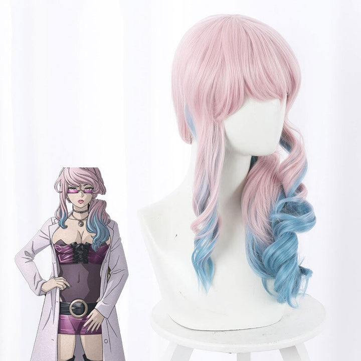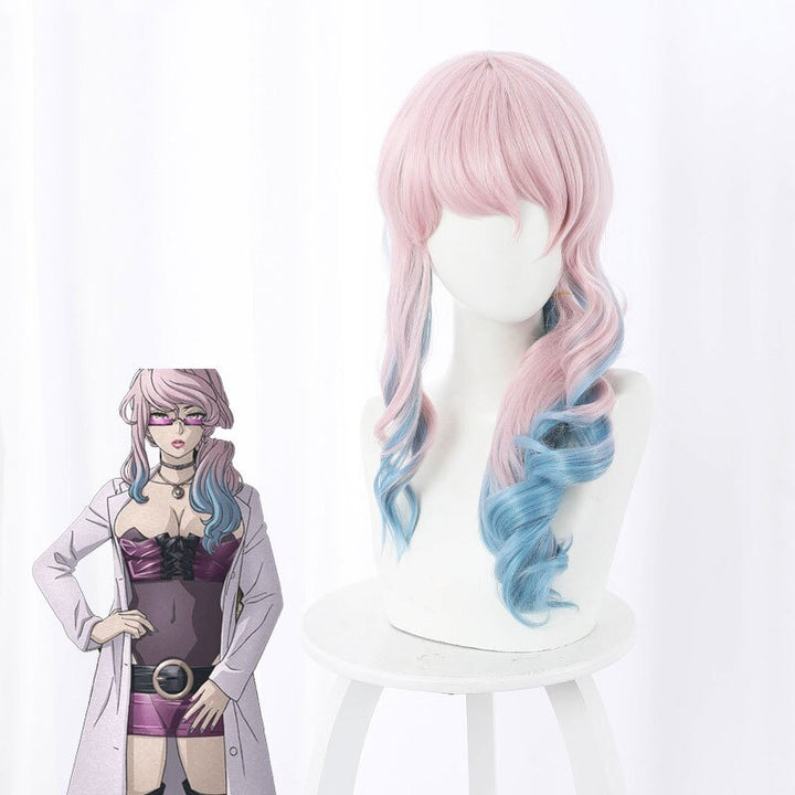 Akudamama Drive Cosplay Doctor Wig ishaha Pink Blue Gradient Long Wave Hair Halloween Party Costume Accessories