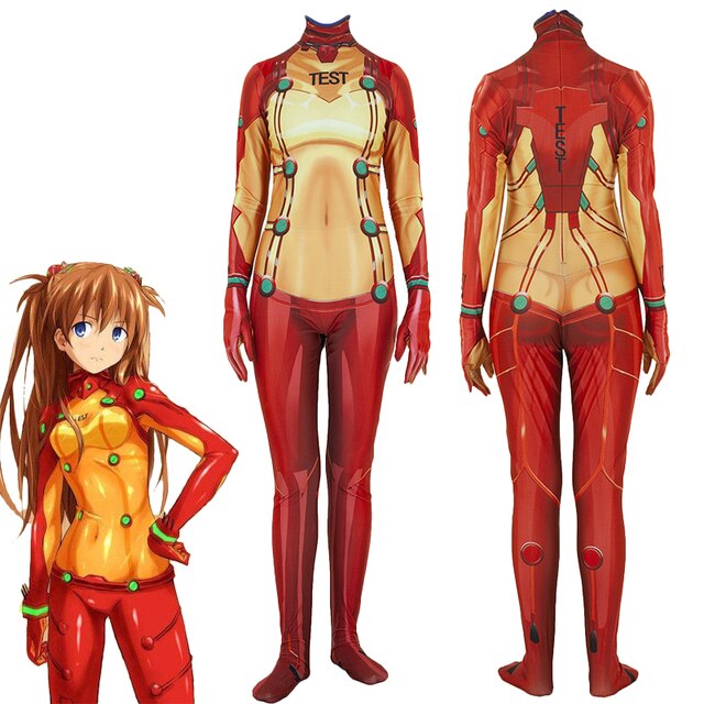 Anime Asukaka Langleyey Soryuyu Jumpsuits Cosplay Costume Unisex One Piece Fullbody Zentai Suit Bodysuit
