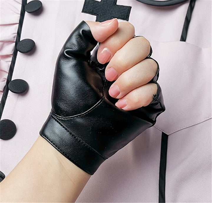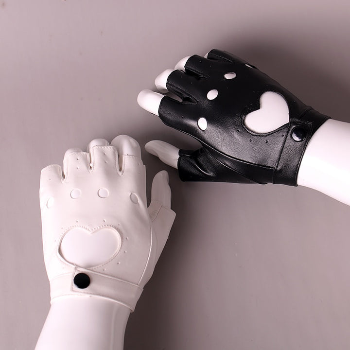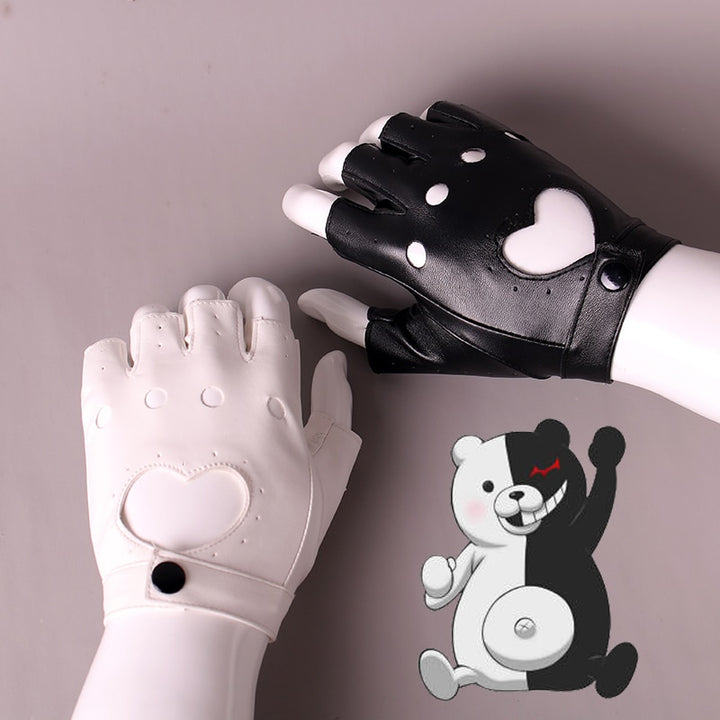 Anime Danganronpapa Monokumama Fingerless Glove Black White Half Finger Leather Gloves Cosplay Accessories