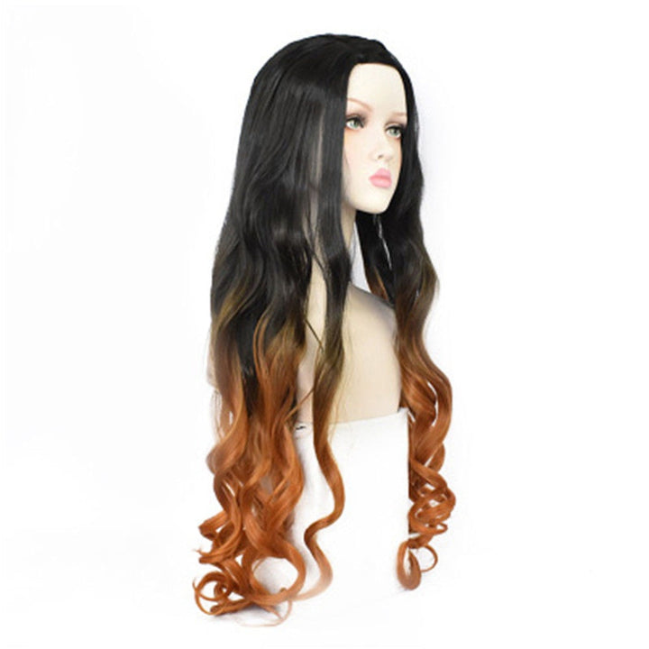 anime Demons S Slayerer and Kimetsusu Yaibaba Kamadodo Nezukoko cos hair long black with orange cosplay Synthetic wigs + Wig Cap