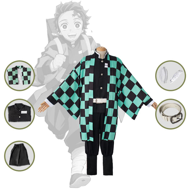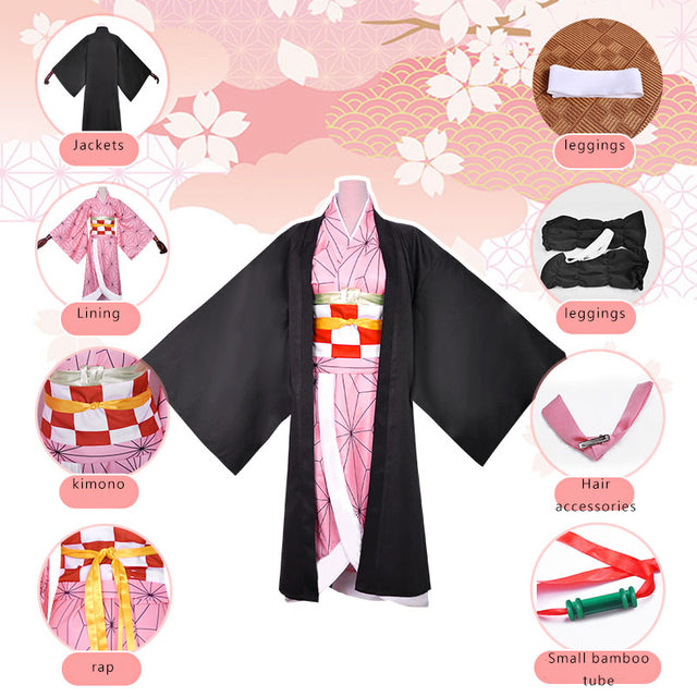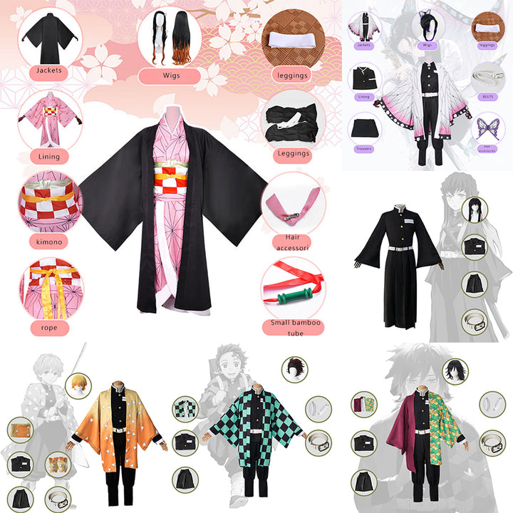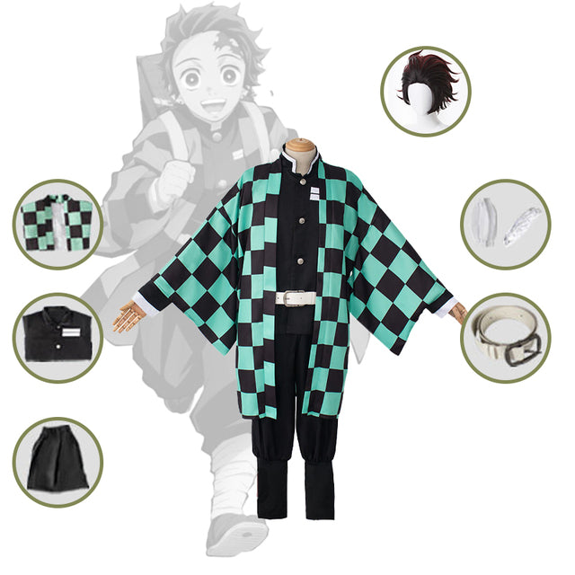 Anime Demon and Slayerer and Kimetsusu Yaibaba Tanjirouou Kamadodo Nezukoko Cosplay Children Kids Kimono Uniform Cosplay Costume Wig Sets