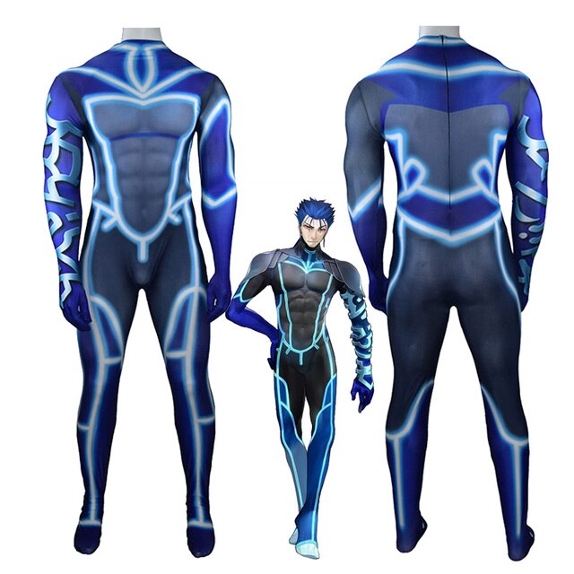 Anime Fates Stays One Night Lancerer Cucu Chulainninn Jumpsuit Cosplay Costume Adults One Piece Fullbody Zentai Lycra Blue Tight Bodysuit