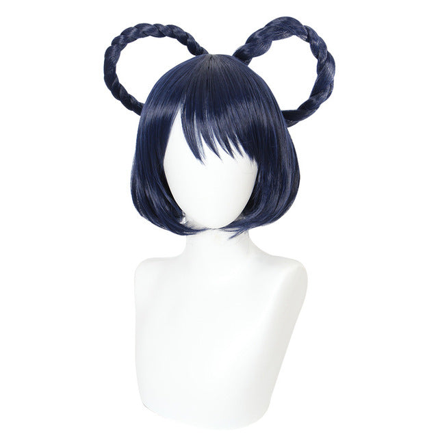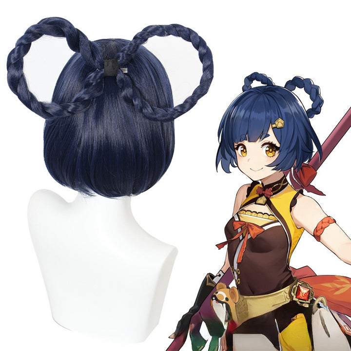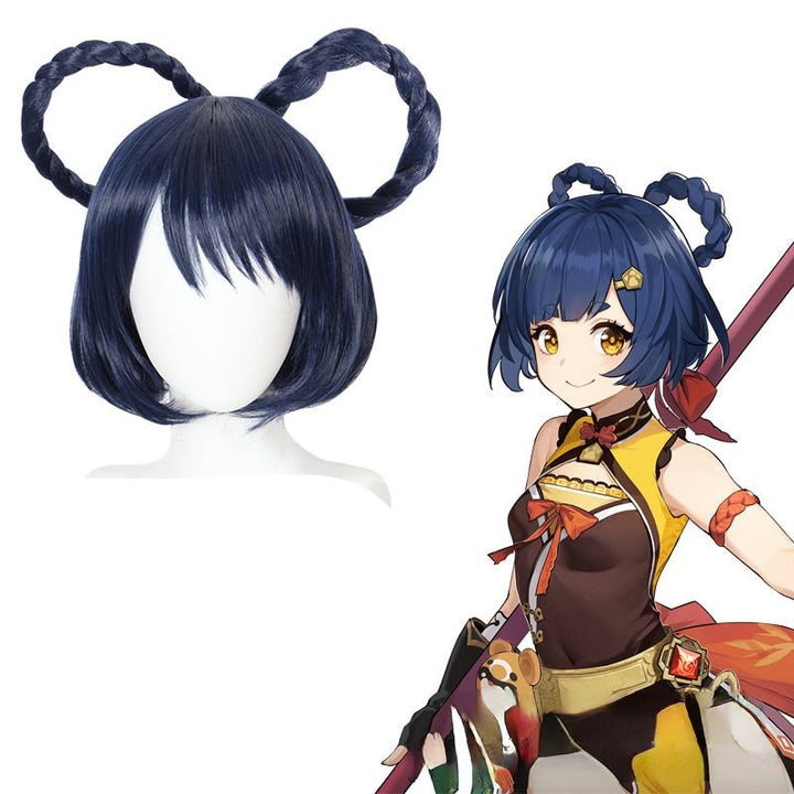 Anime Game Genshing and Impacts Cosplay Halloween Xiangling Cosplay Wig Dark Blue Horoscopes Twists Xiang Ling Cos Hair